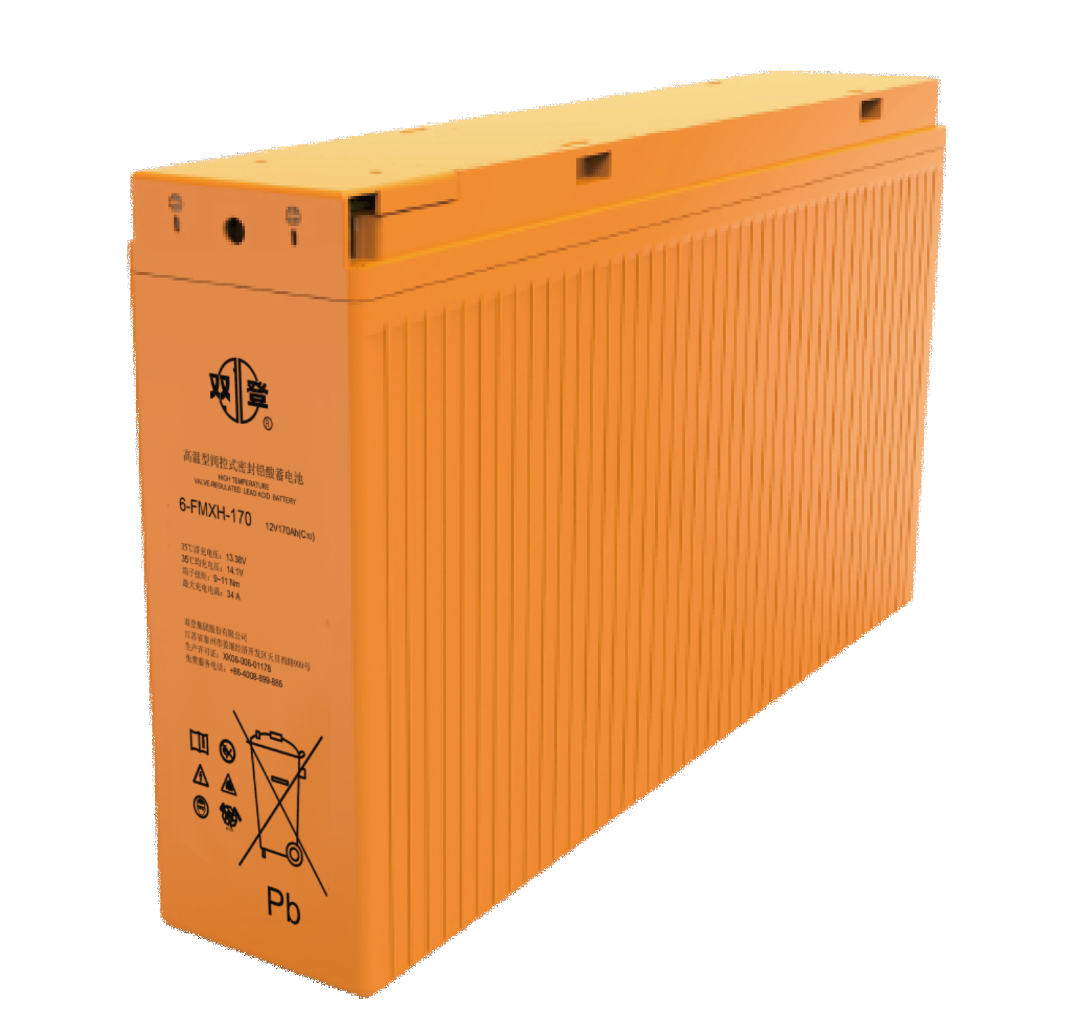 6-FMXH高温型阀控密封铅酸蓄电池是双登集团针对高温使用环境自主研发的新型产品,把铅酸电池的工作温度从25℃提高到35℃,并保持了同样的寿命水平。外部连接采用前端子设计,装卸简便;狭长型结构,电池长宽比例达3.75~5.00,增强散热性能,有效减少热失控情况发生。