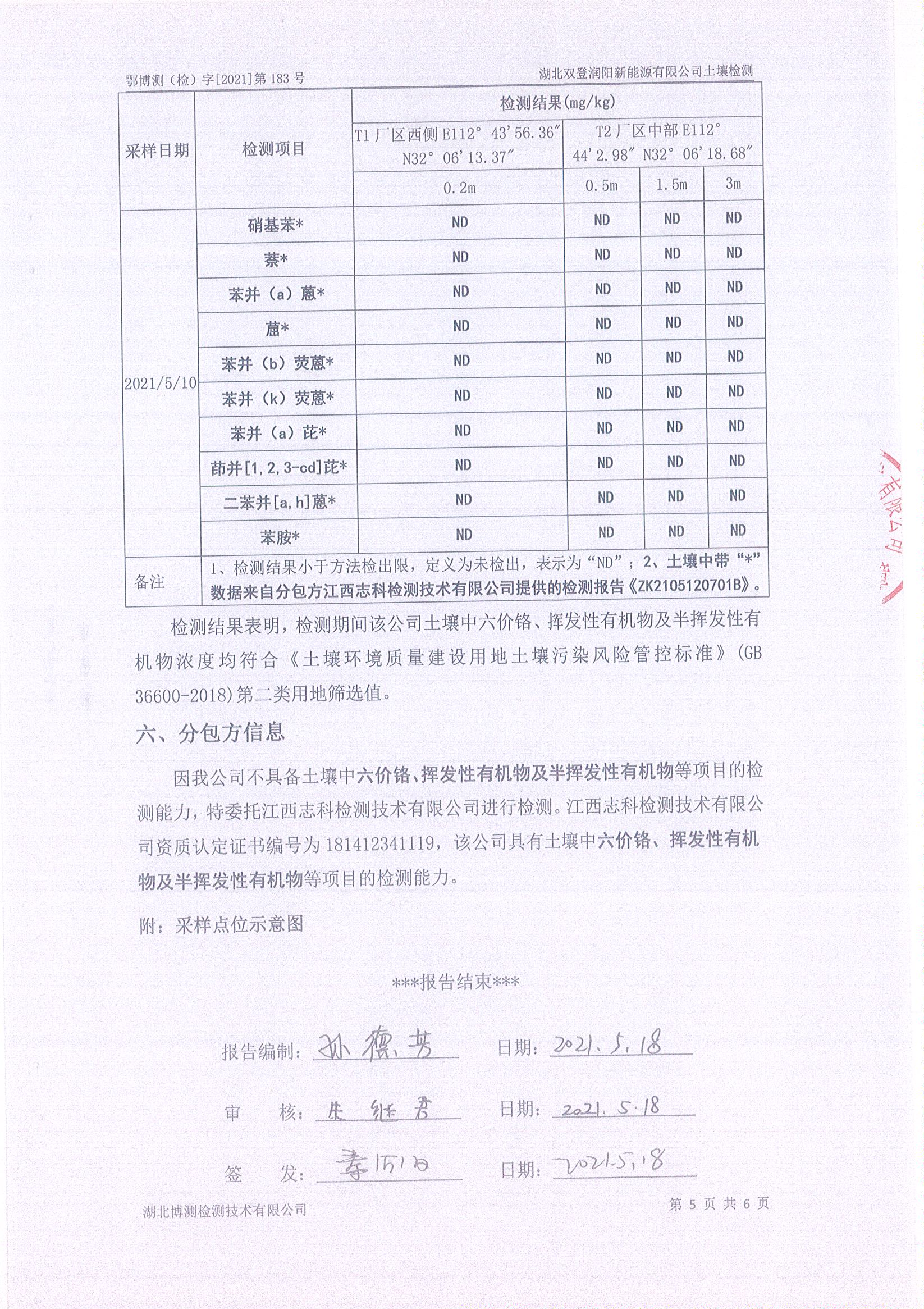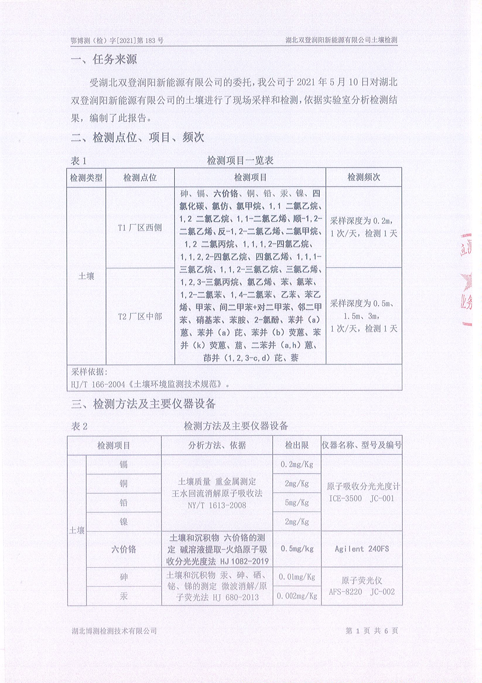 > 湖北双登润阳新能源有限公司土壤检测报告
