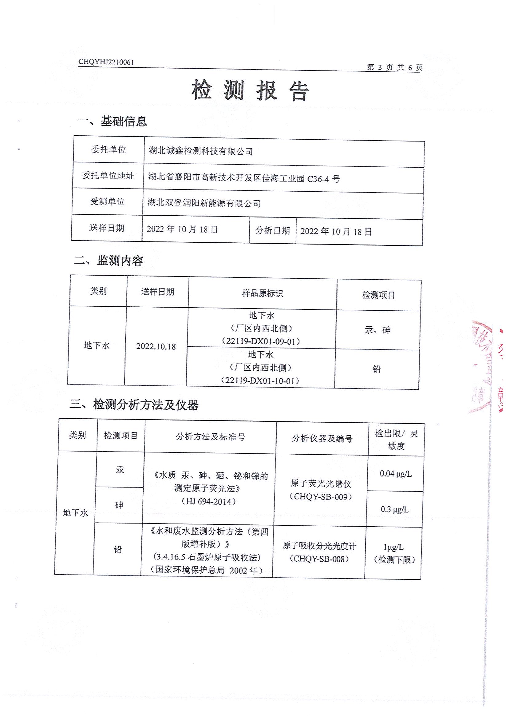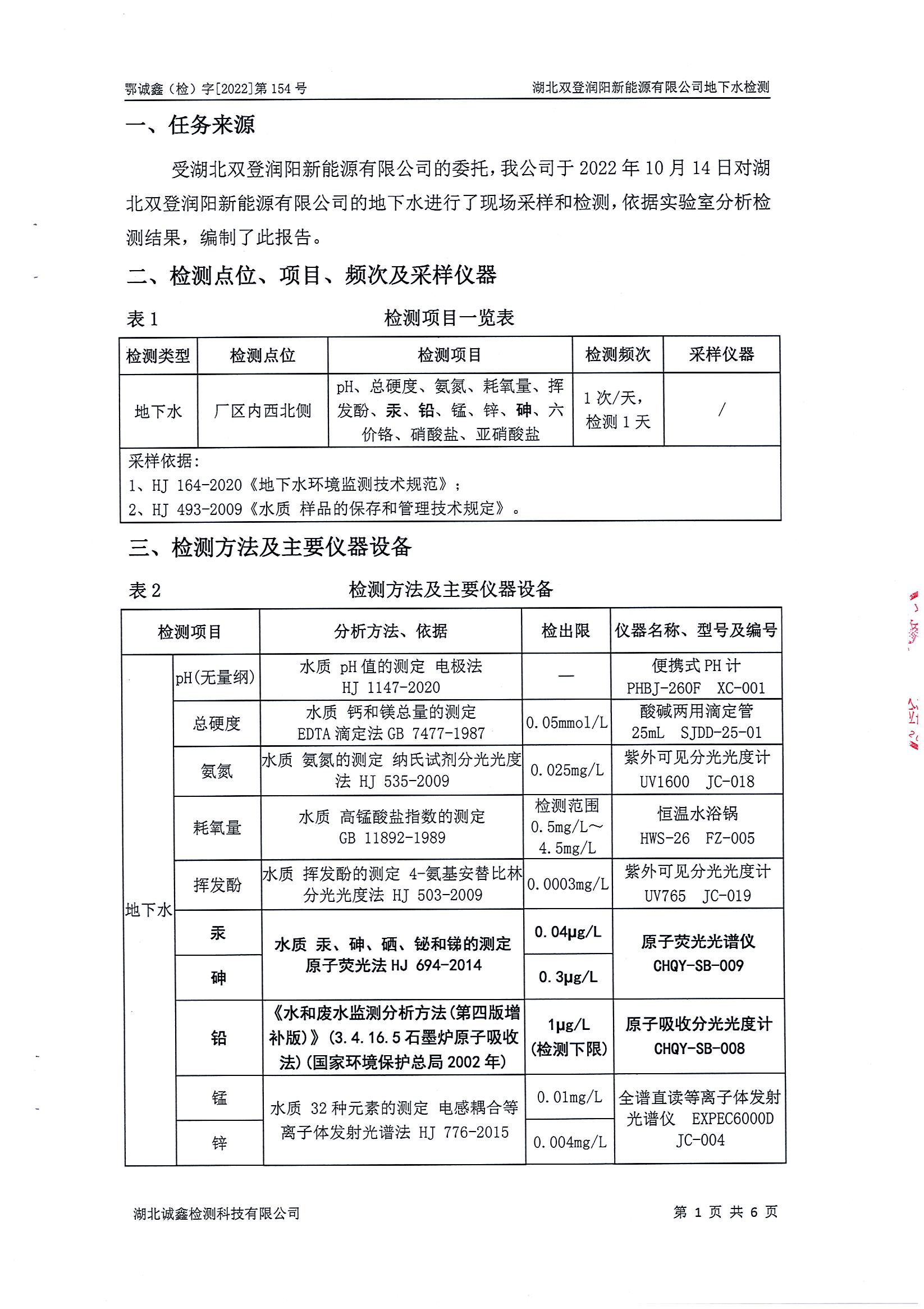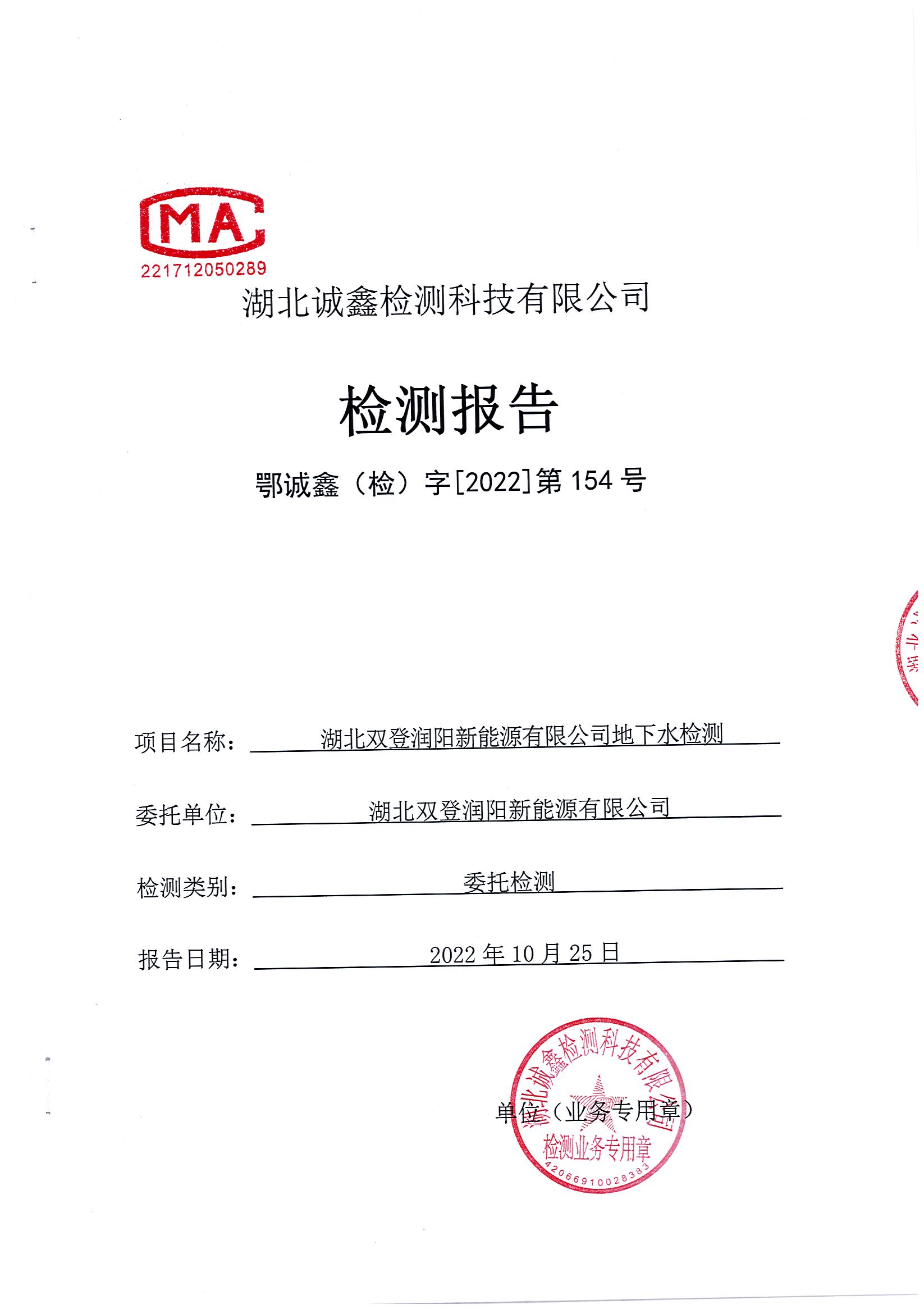 > 2022年《湖北双登润阳新能源有限公司地下水检测报告》