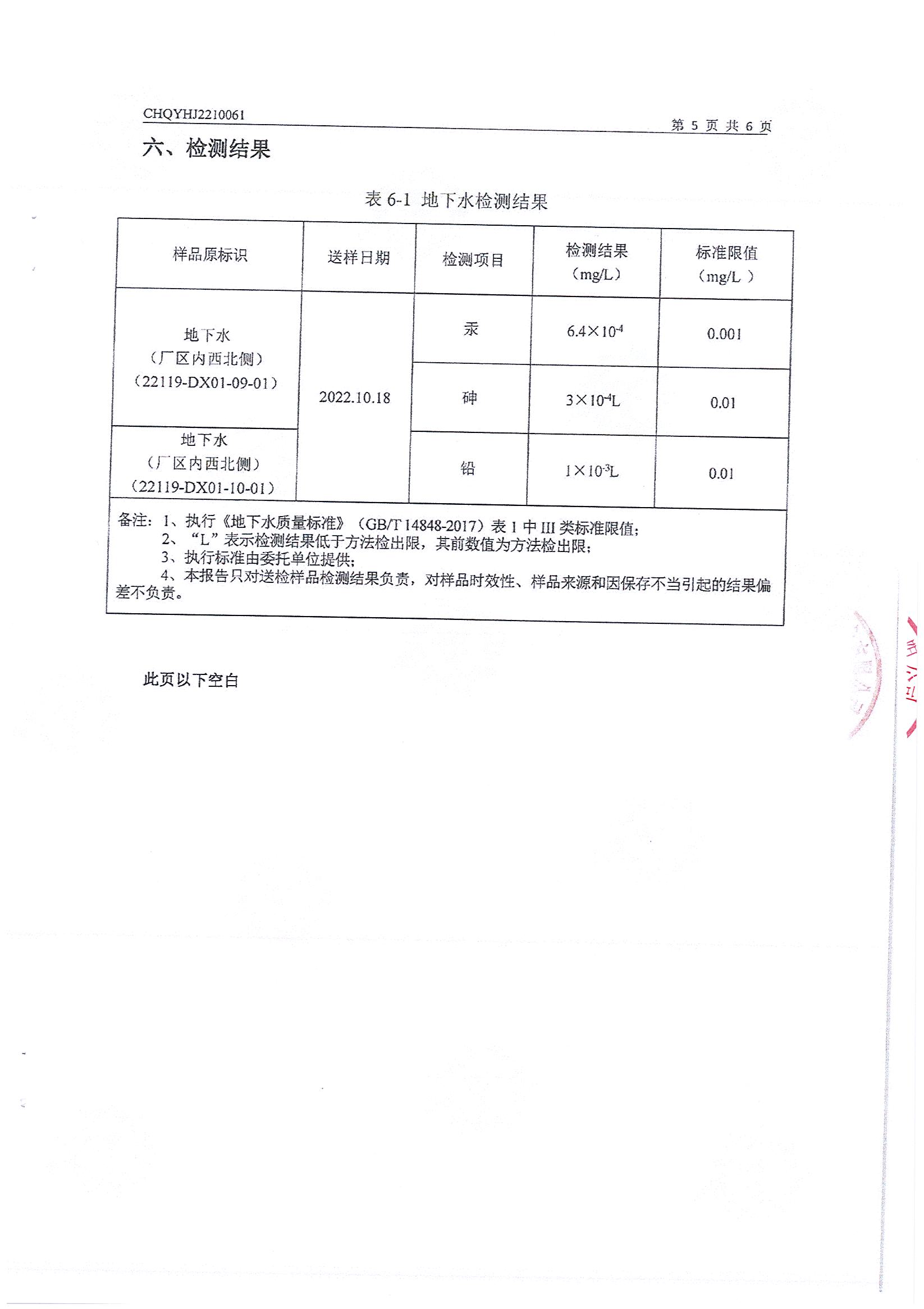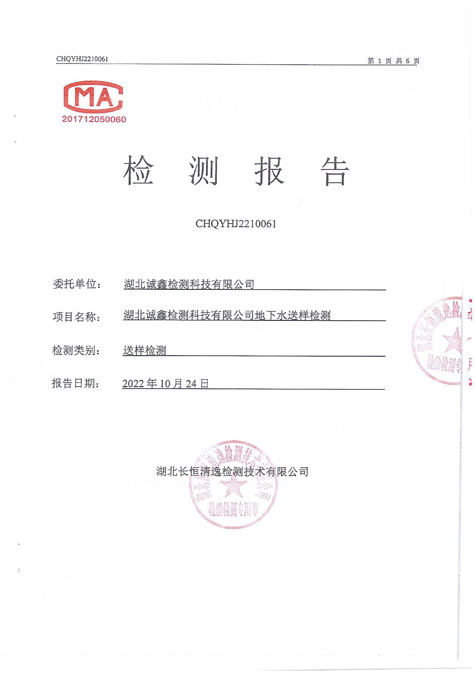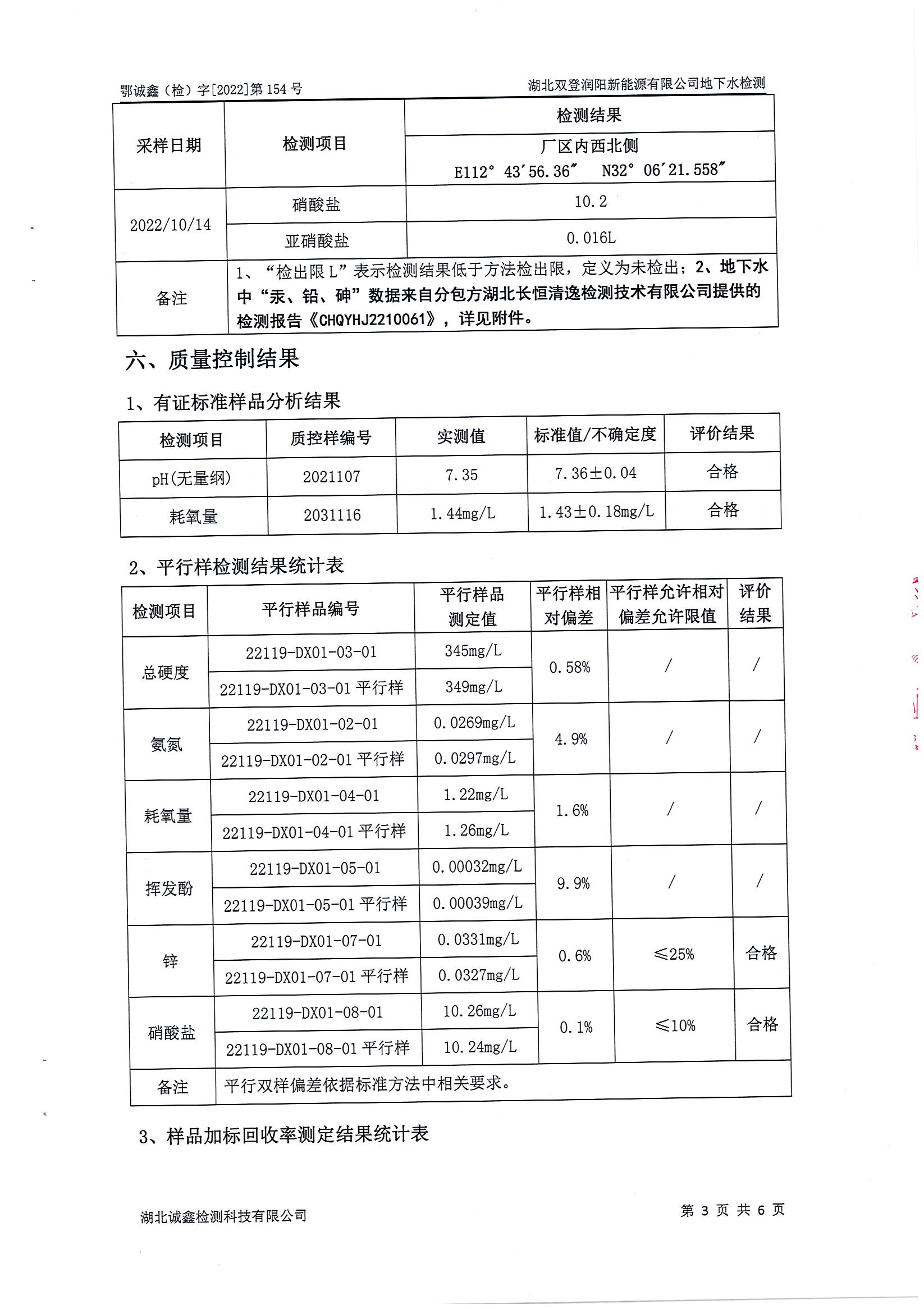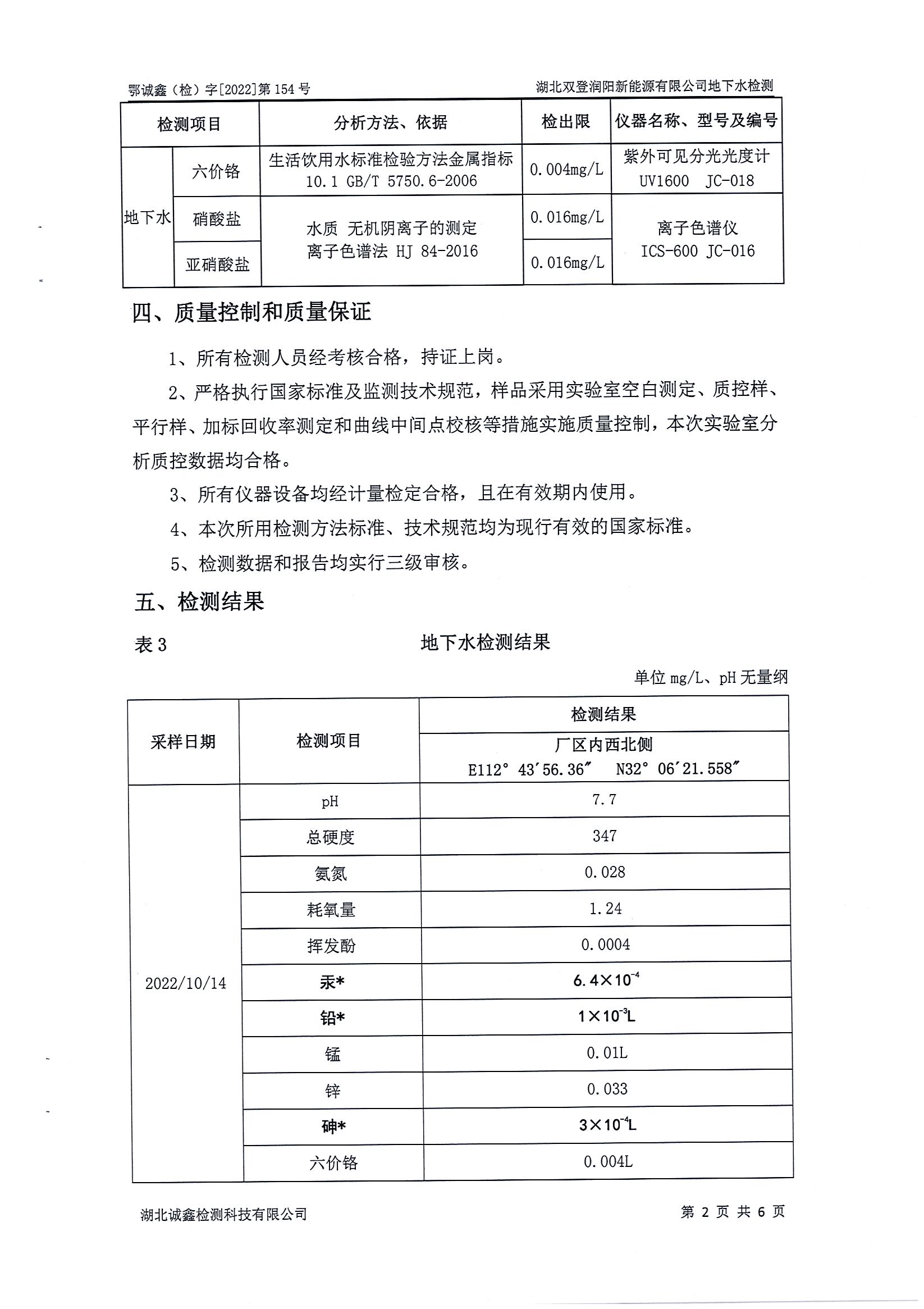 > 2022年《湖北双登润阳新能源有限公司地下水检测报告》