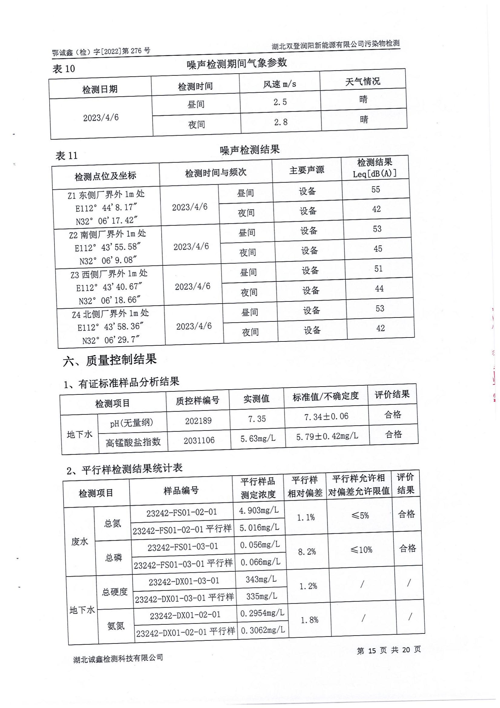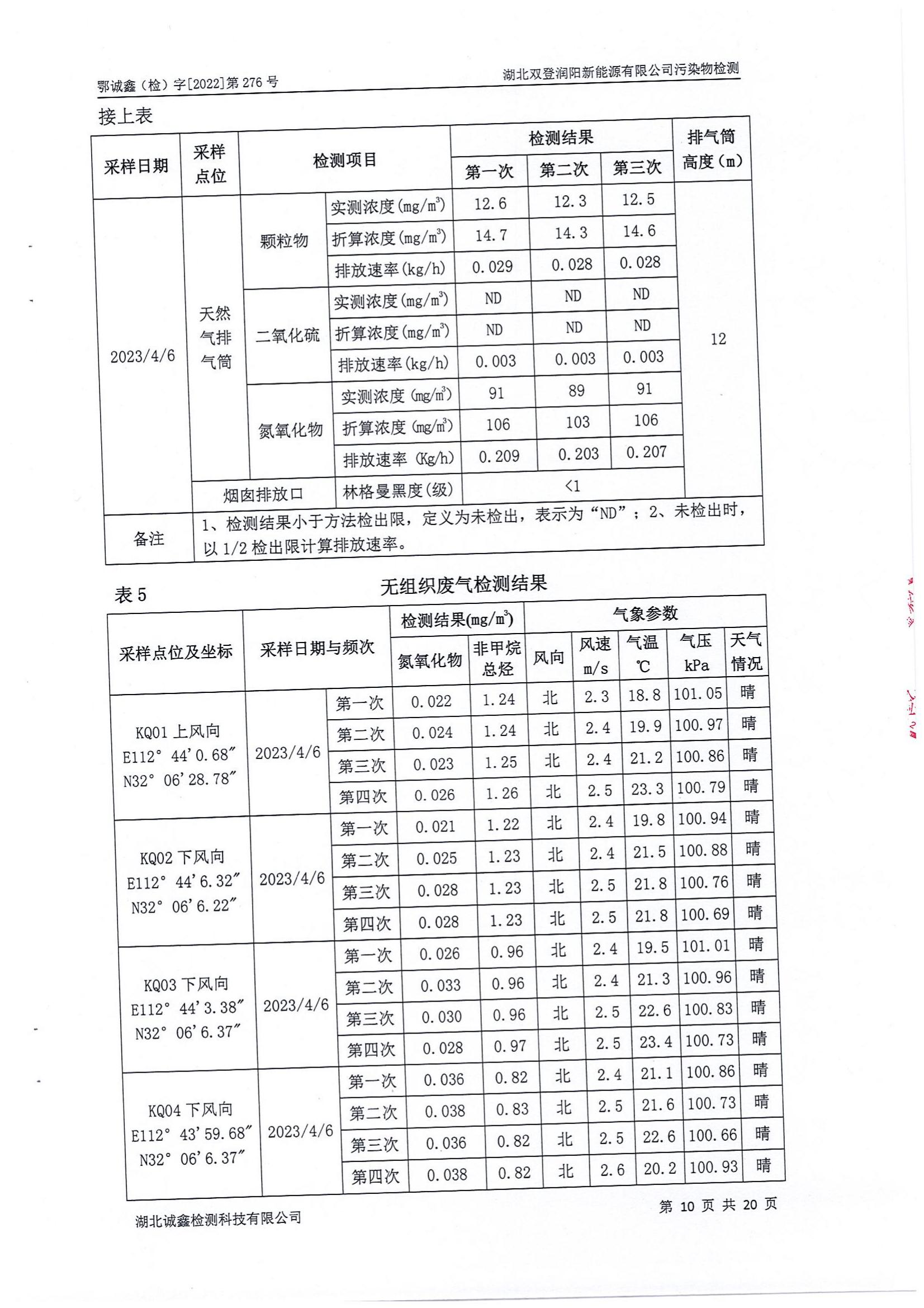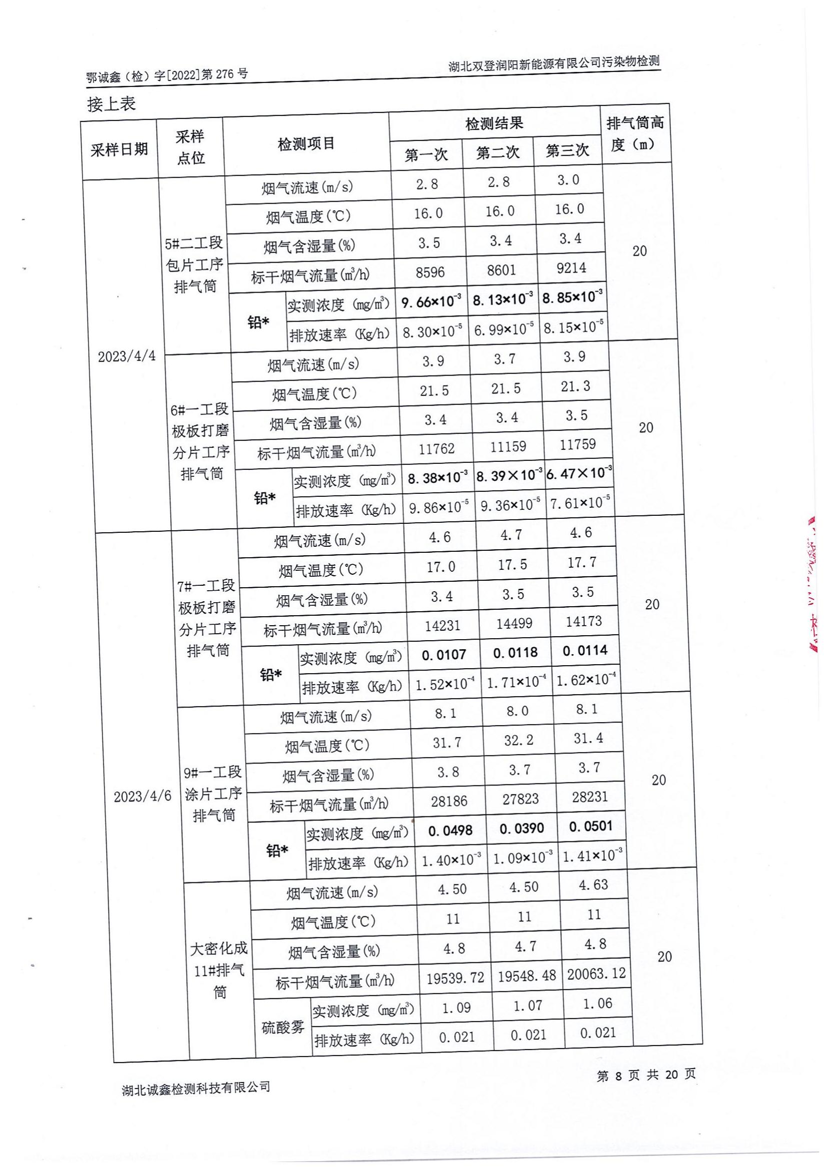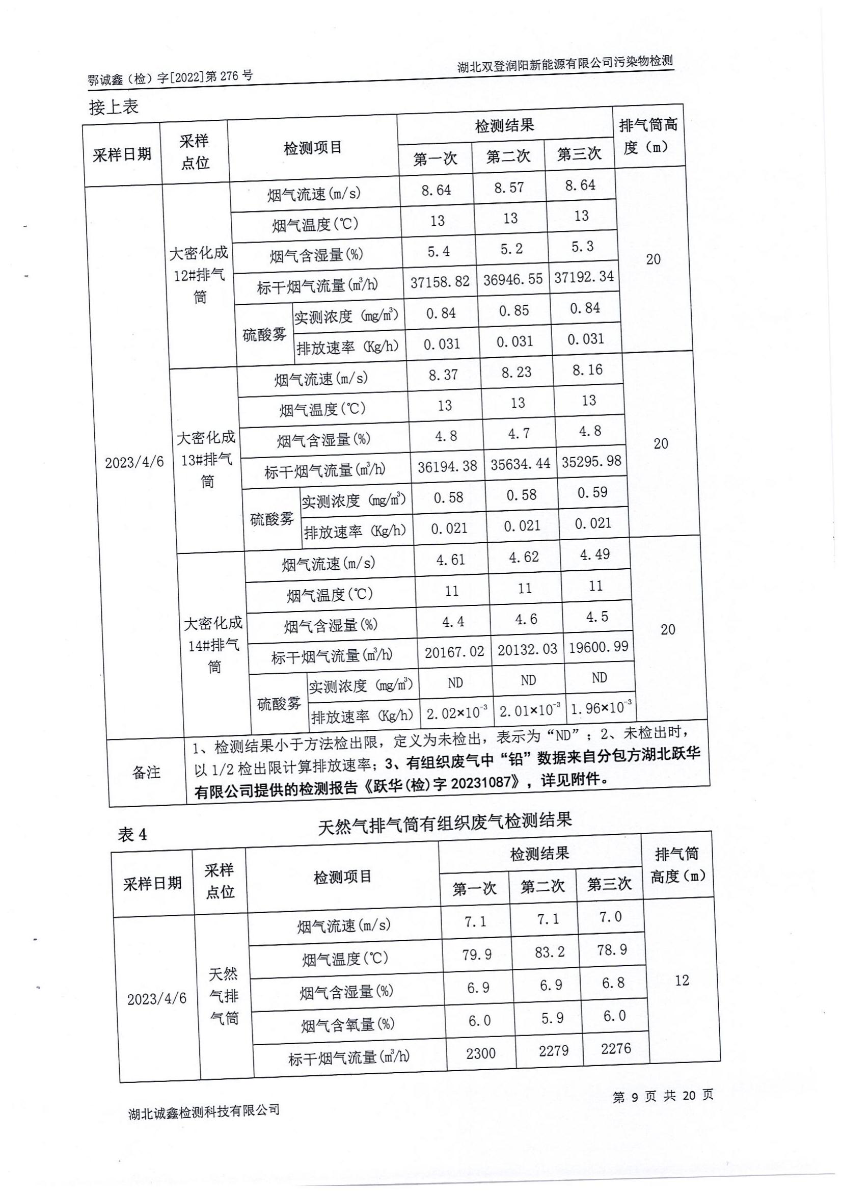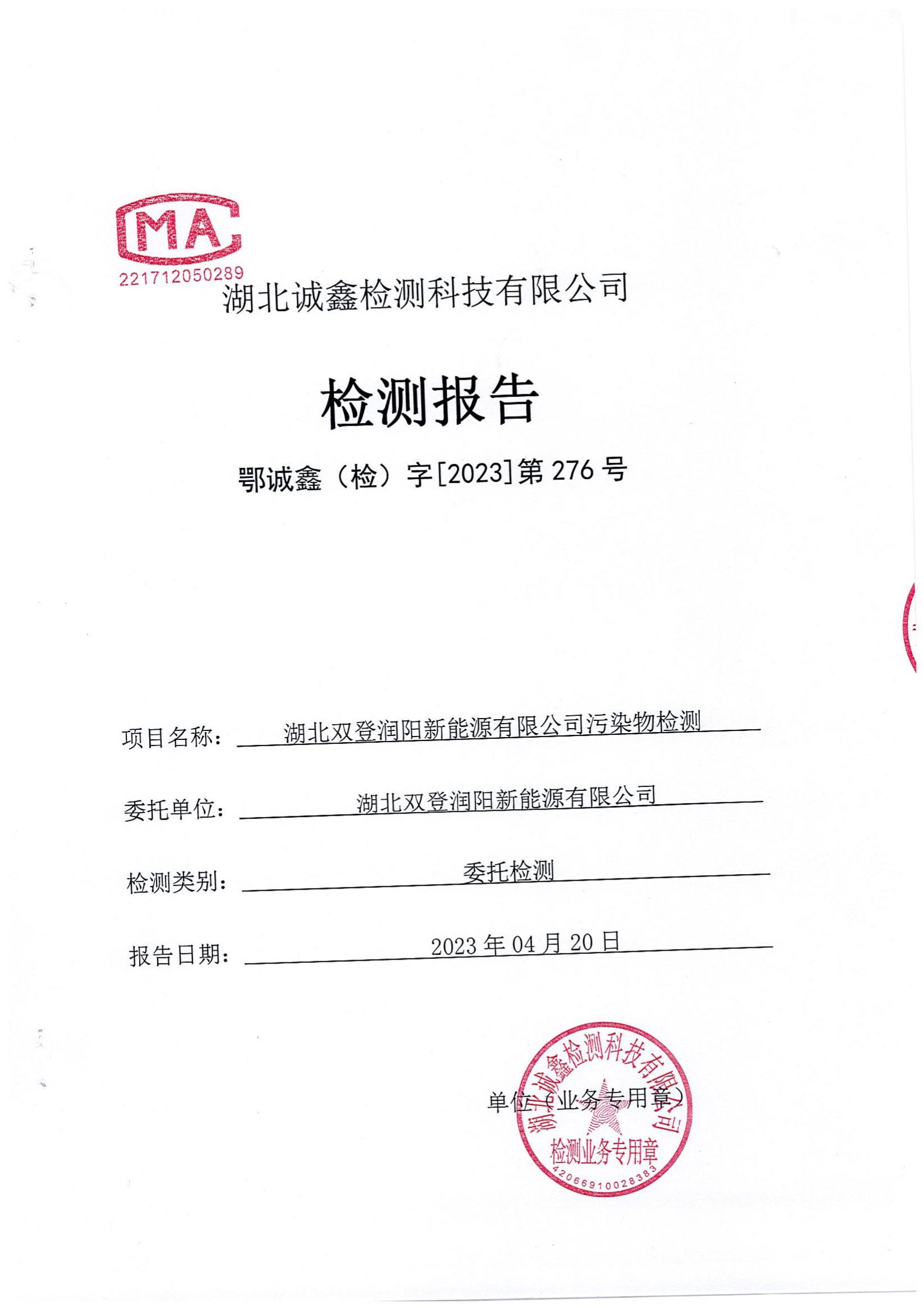 2023年4月份 276 湖北双登润阳新能源有限公司污染物检测