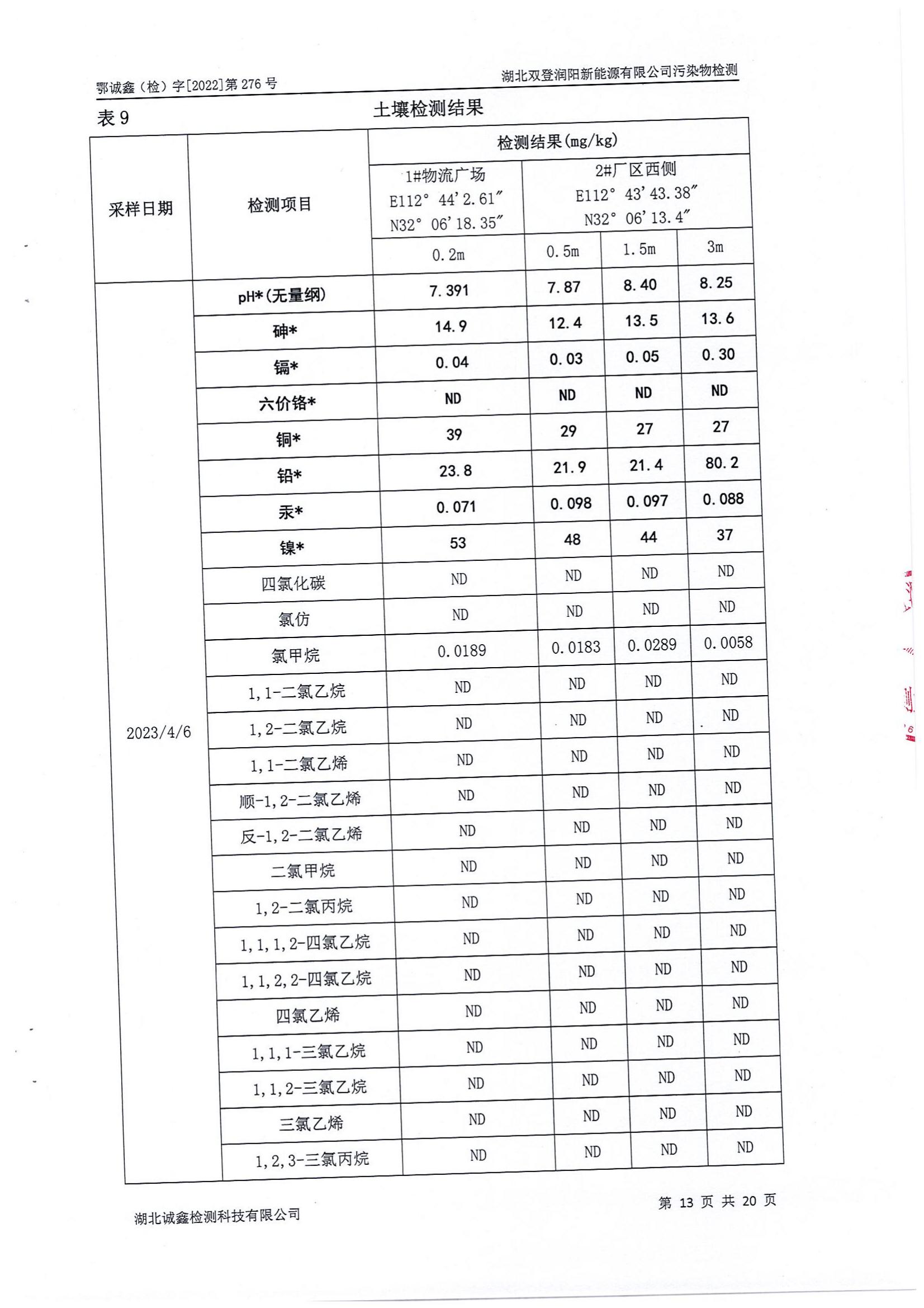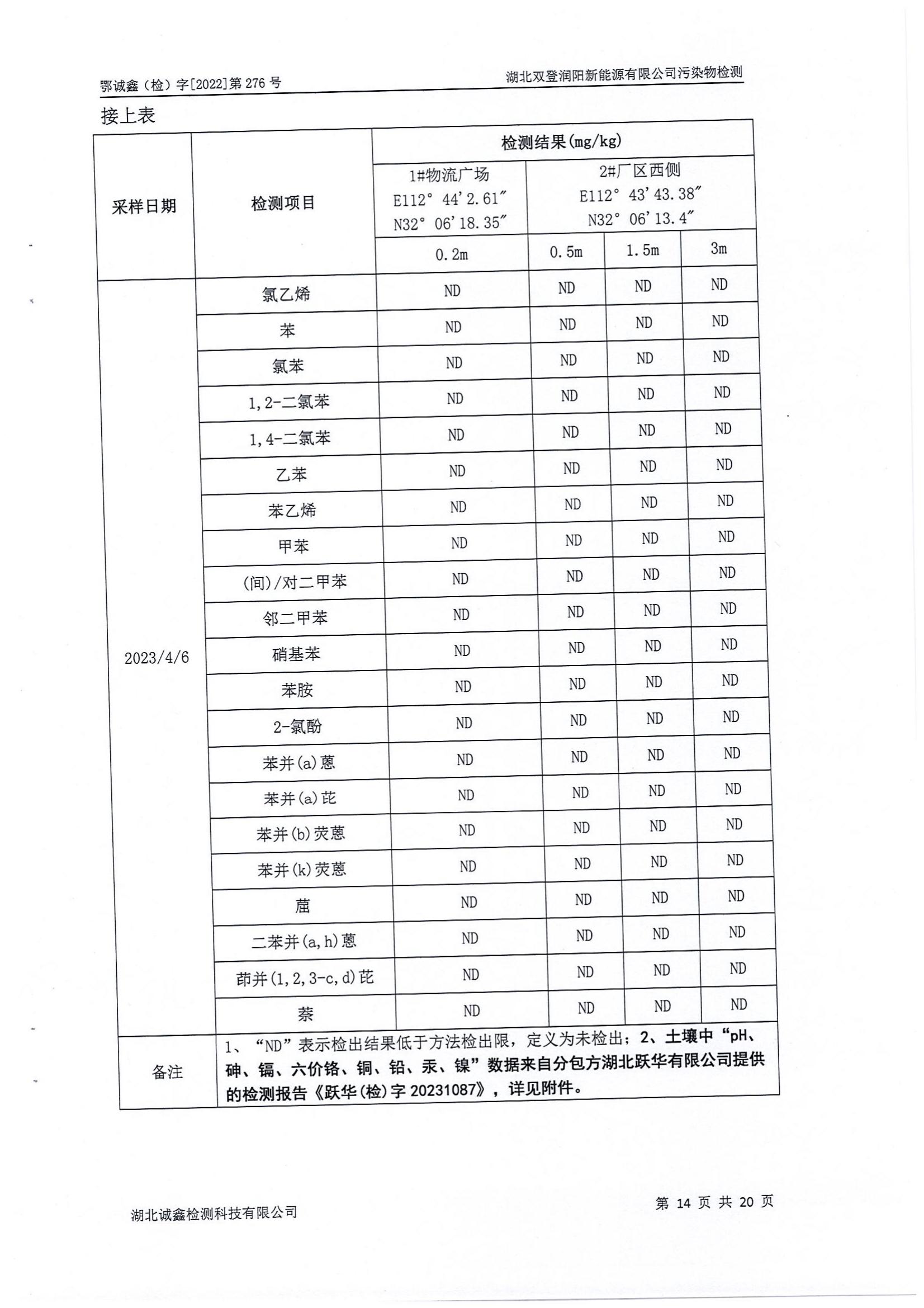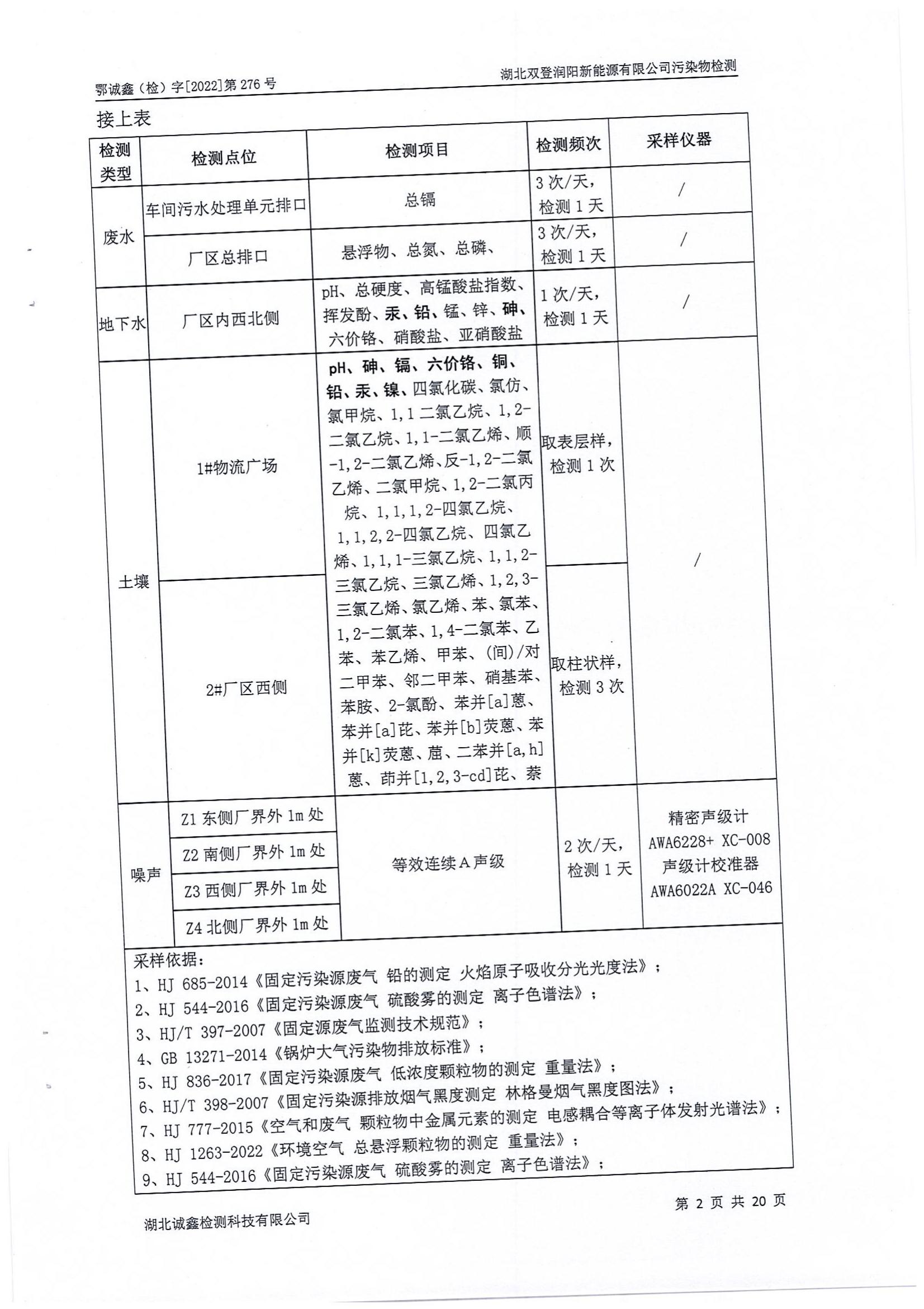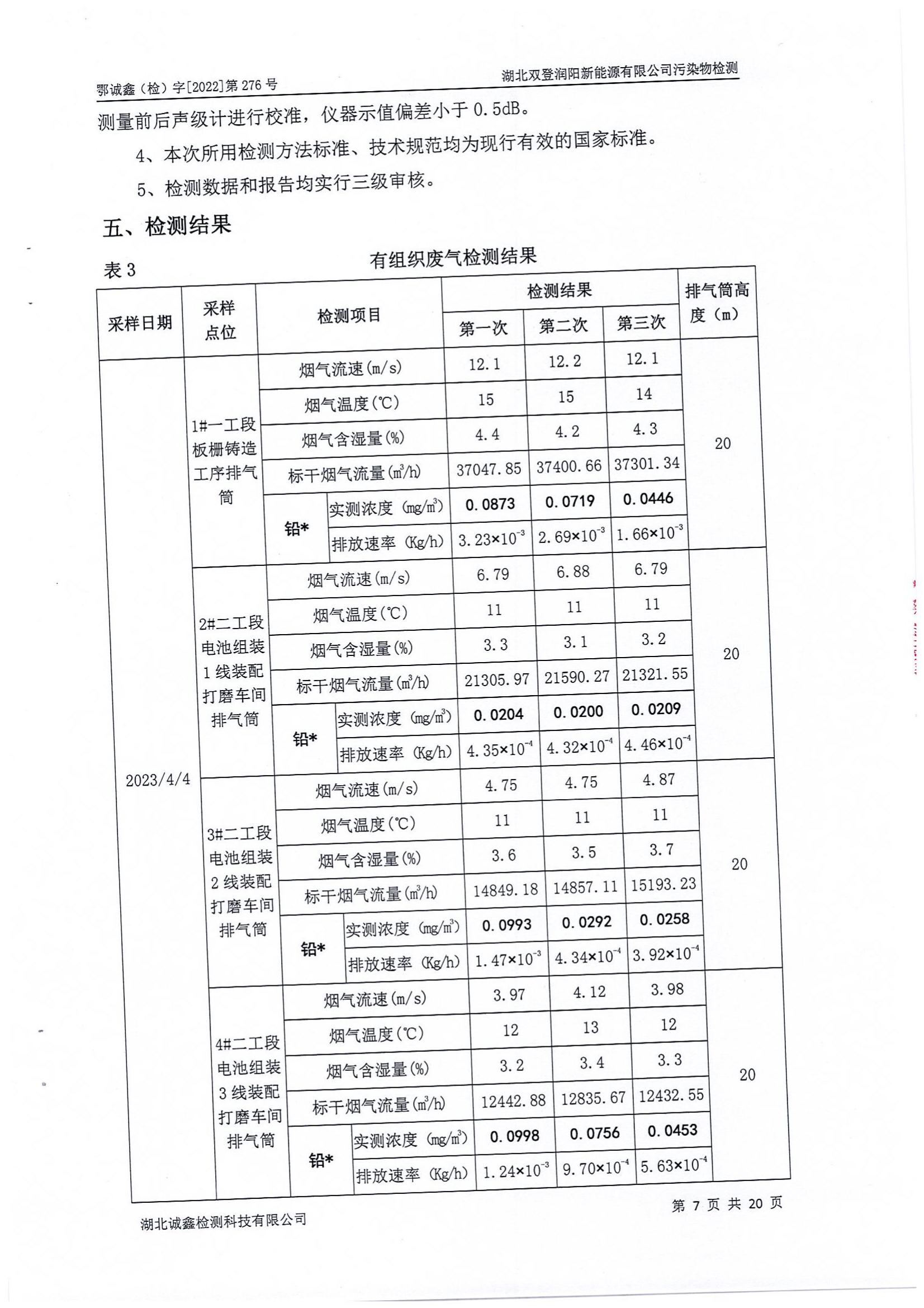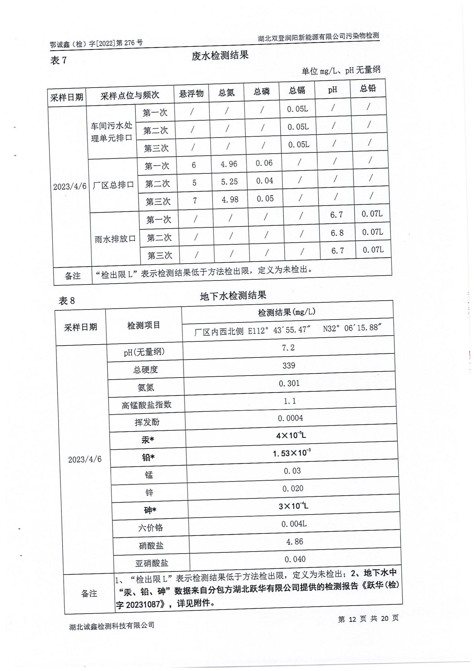 2023年4月份 276 湖北双登润阳新能源有限公司污染物检测