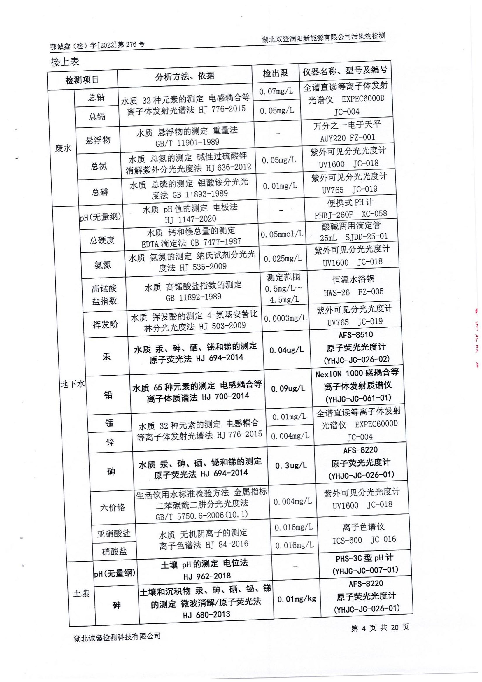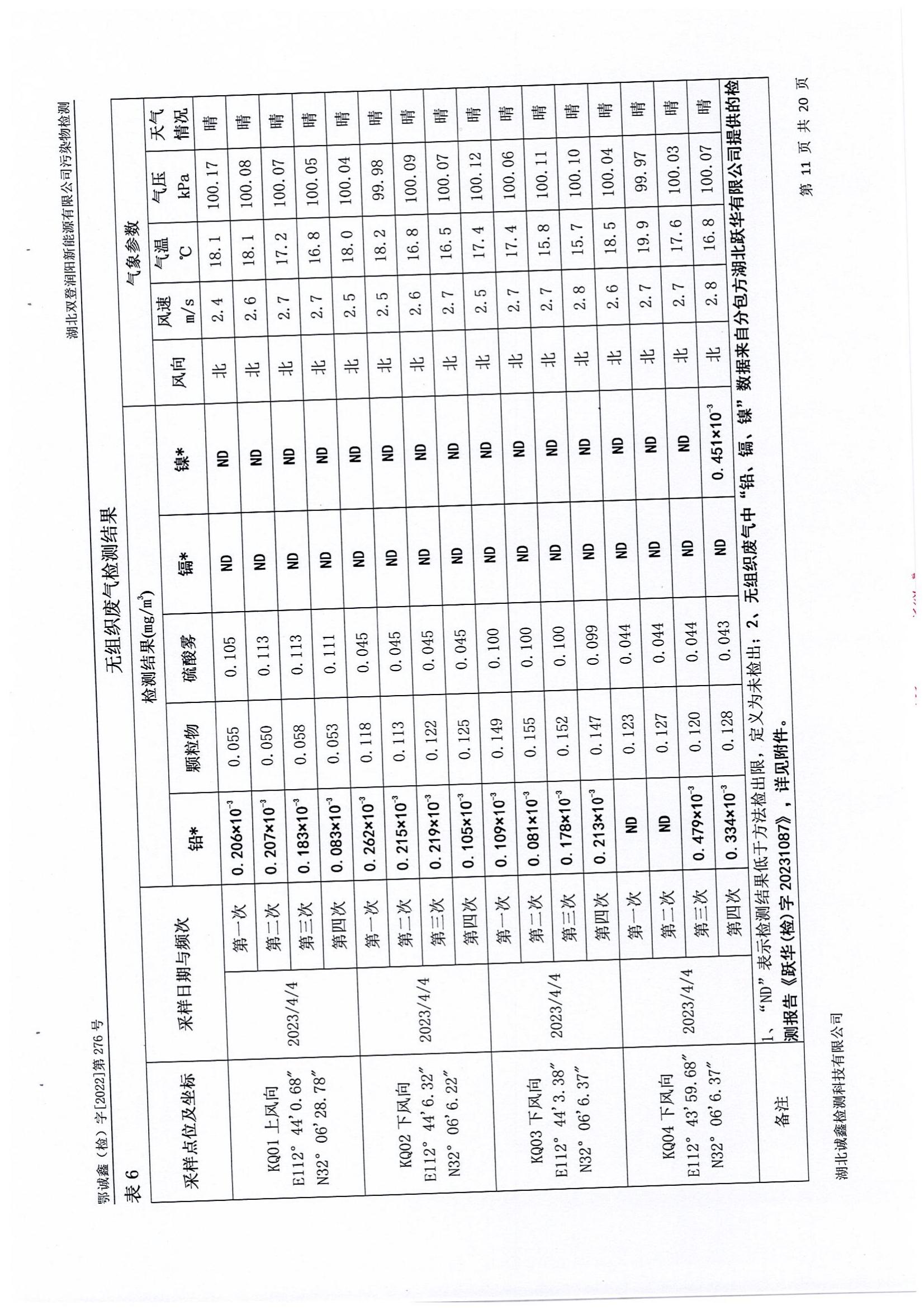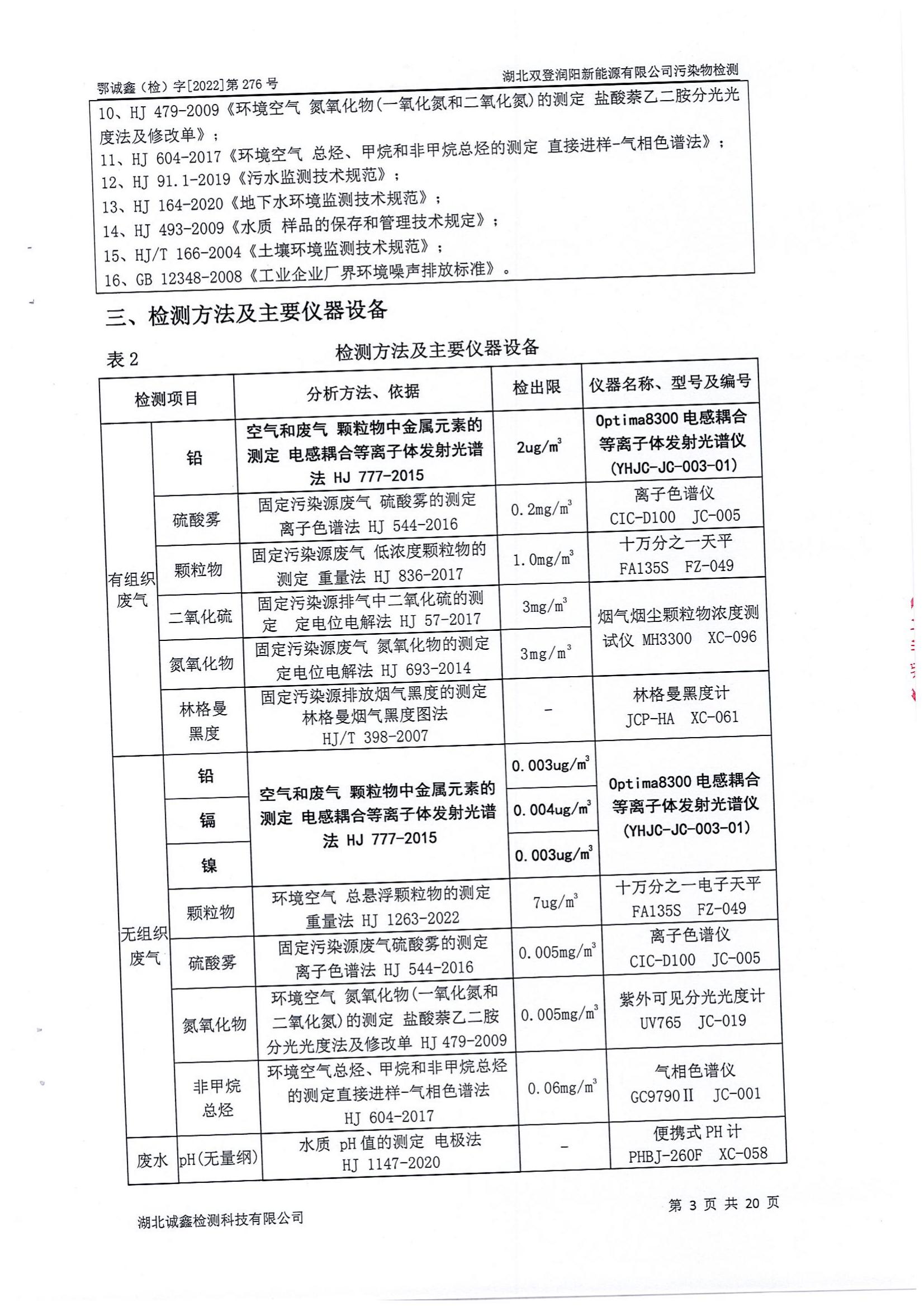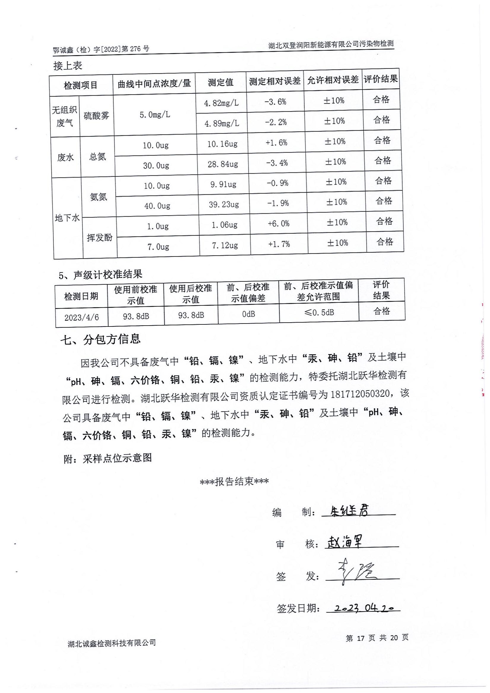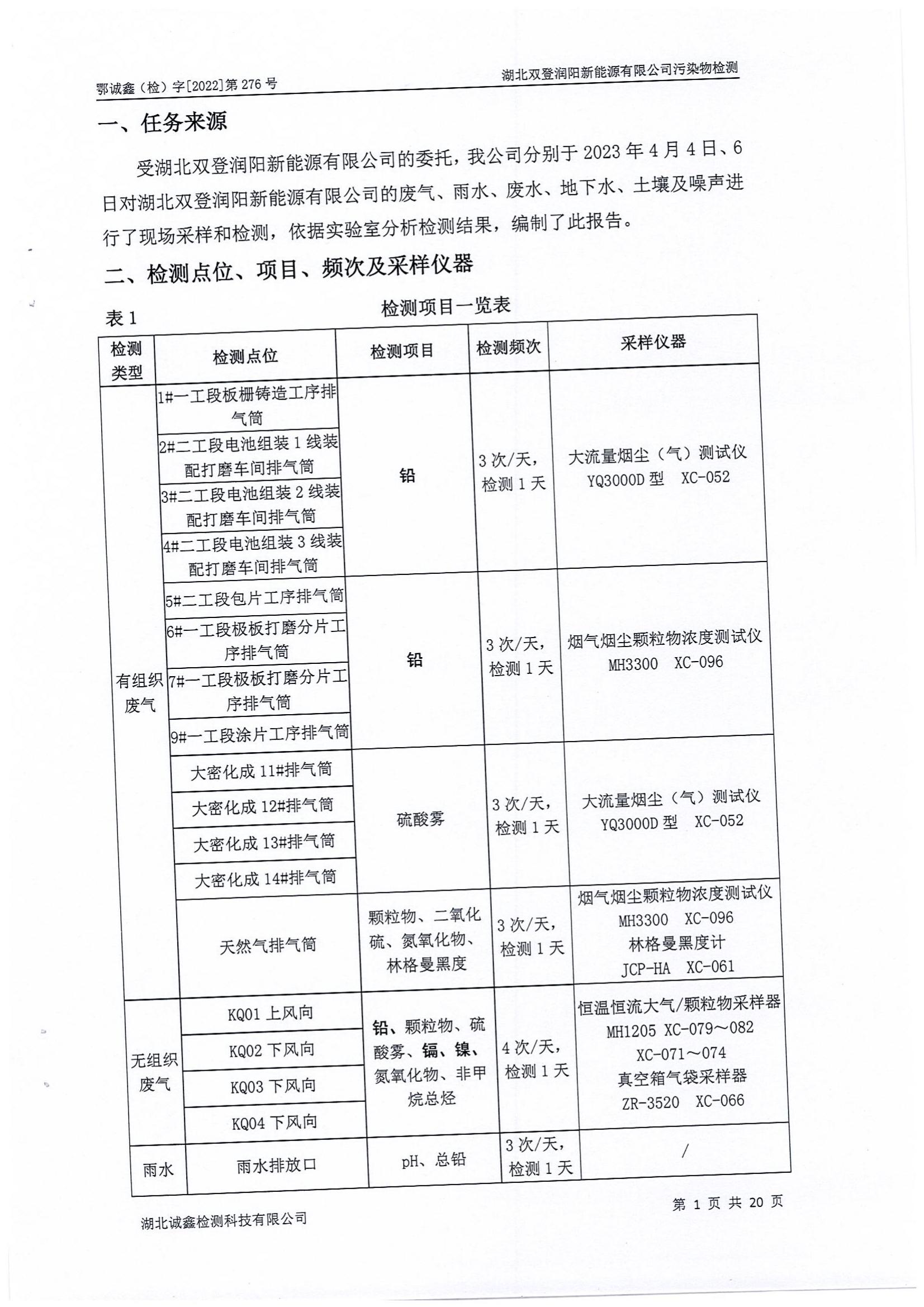 2023年4月份 276 湖北双登润阳新能源有限公司污染物检测
