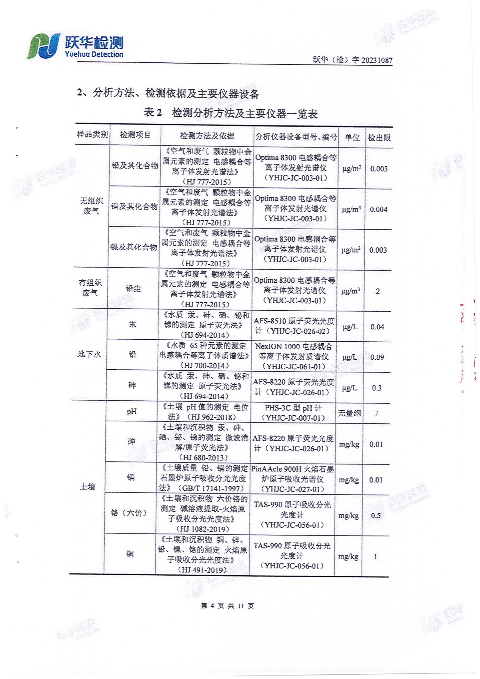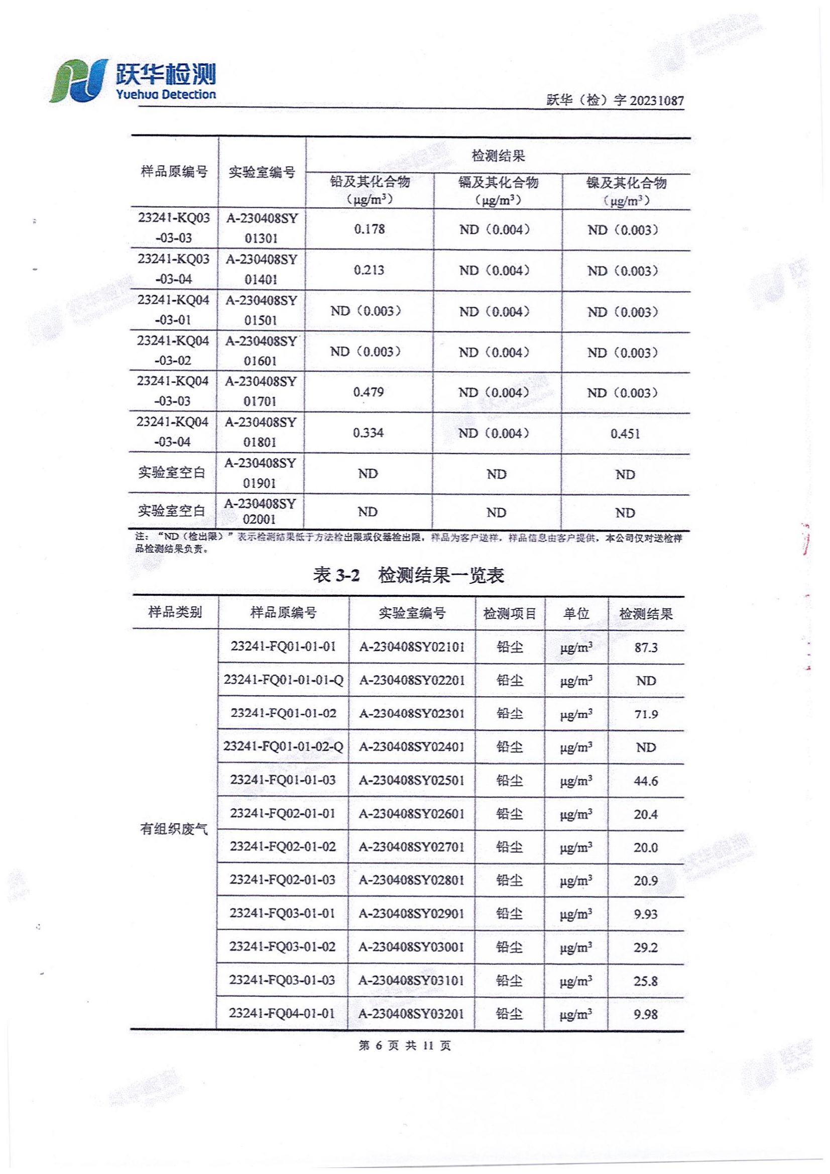 > 2023年4月份 276 湖北双登润阳新能源有限公司污染物检测