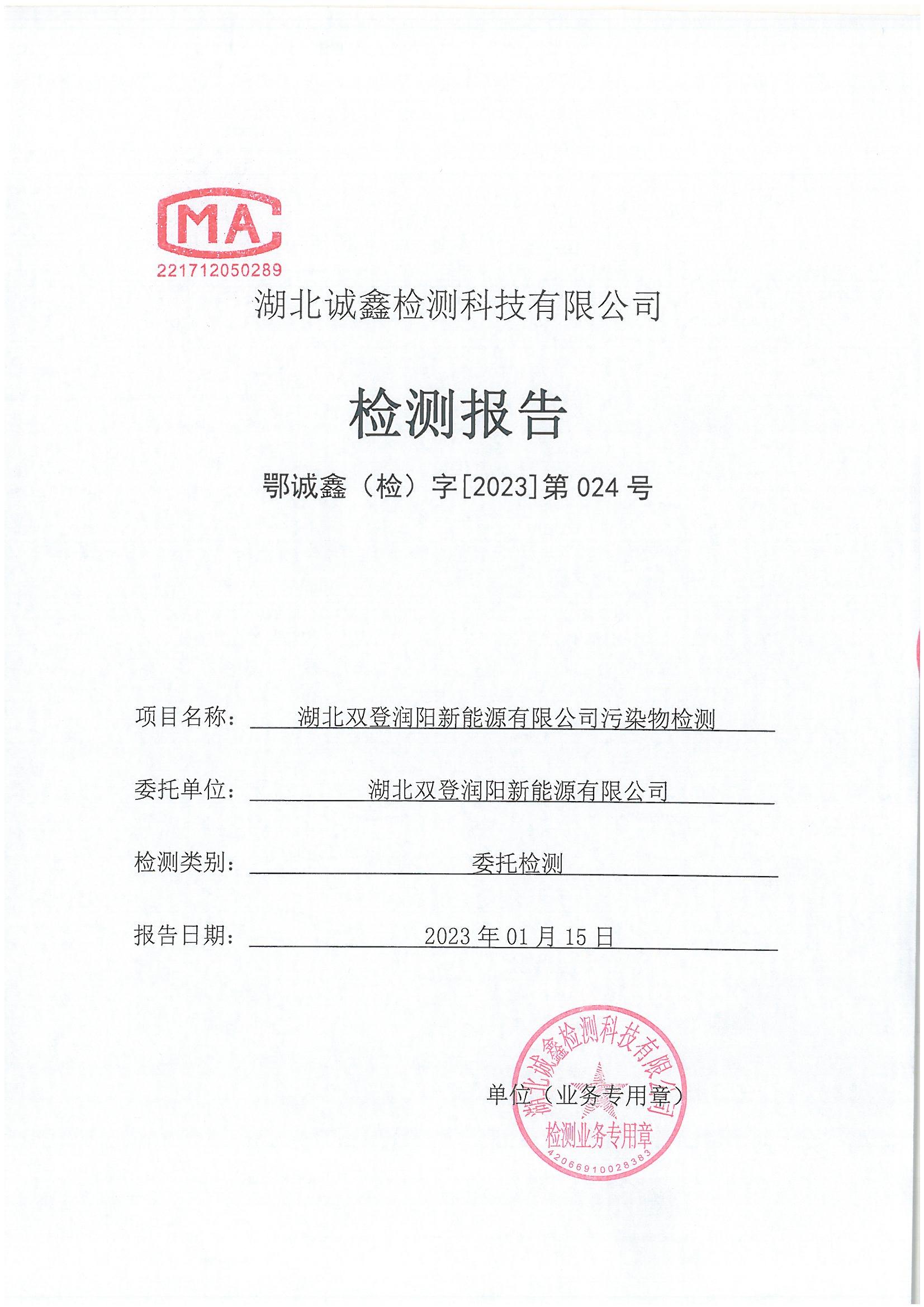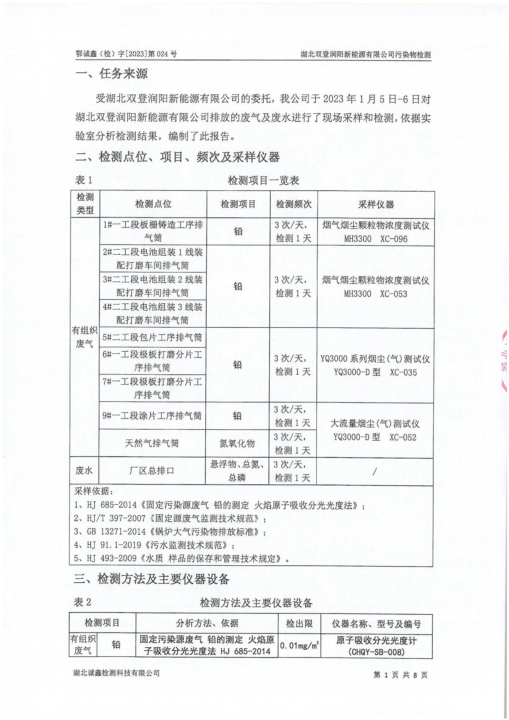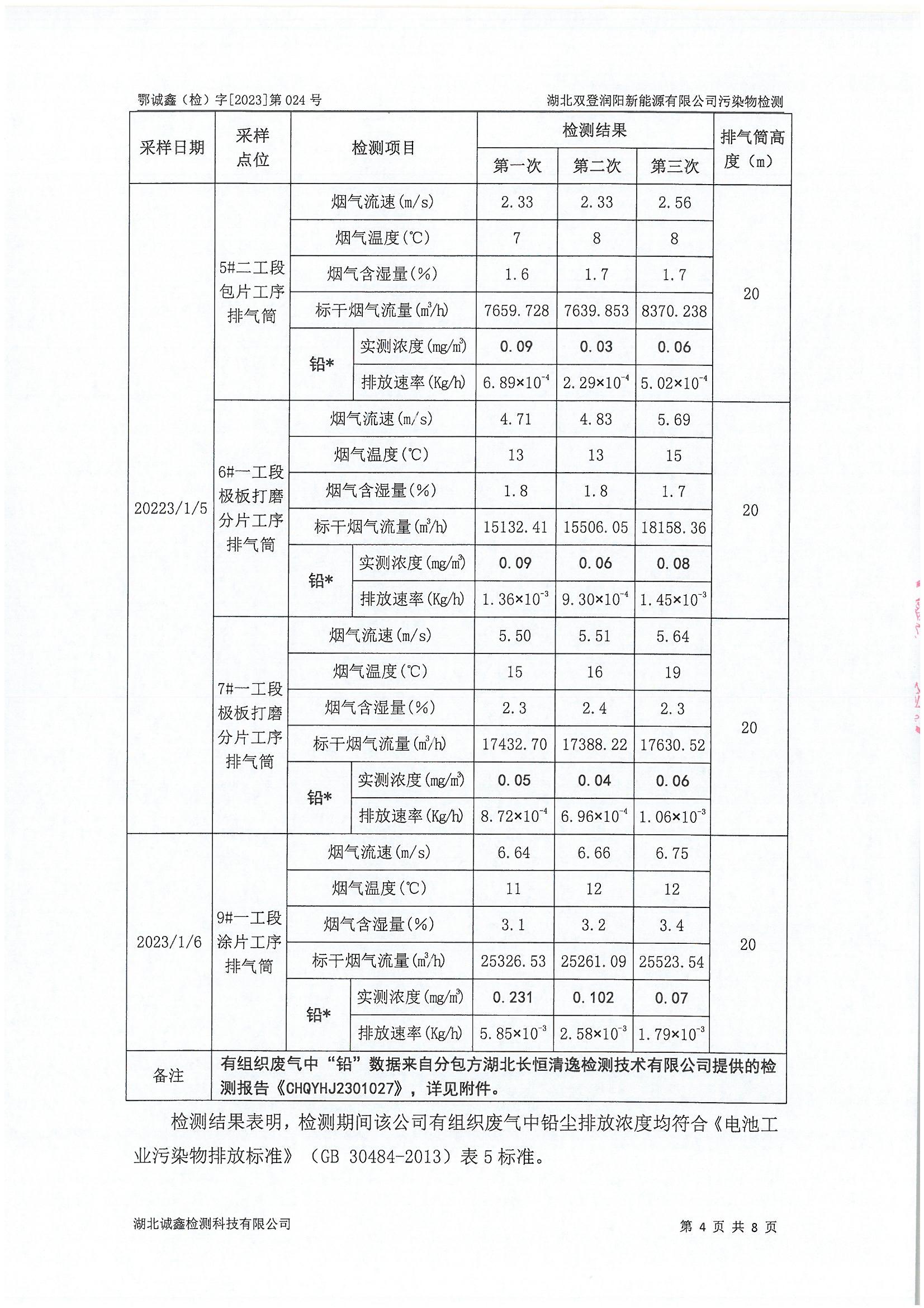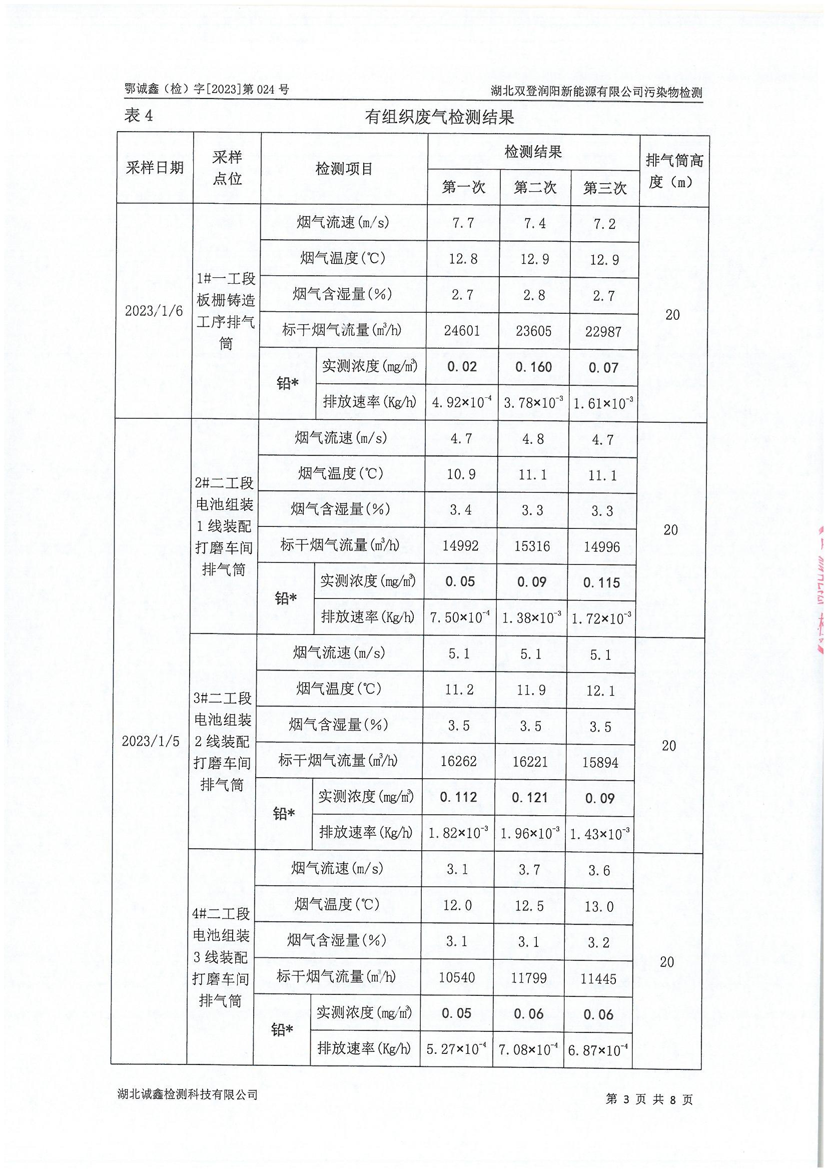 > 2023年1月份 024 湖北双登润阳新能源有限公司污染物检测