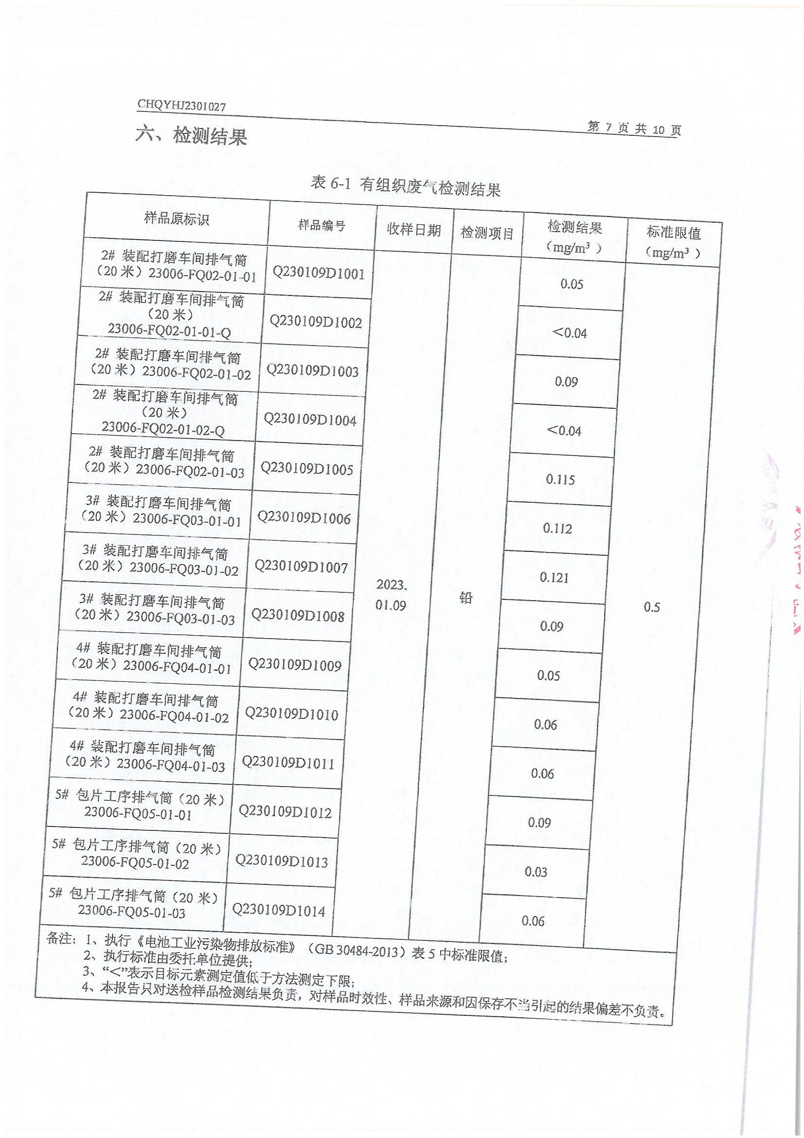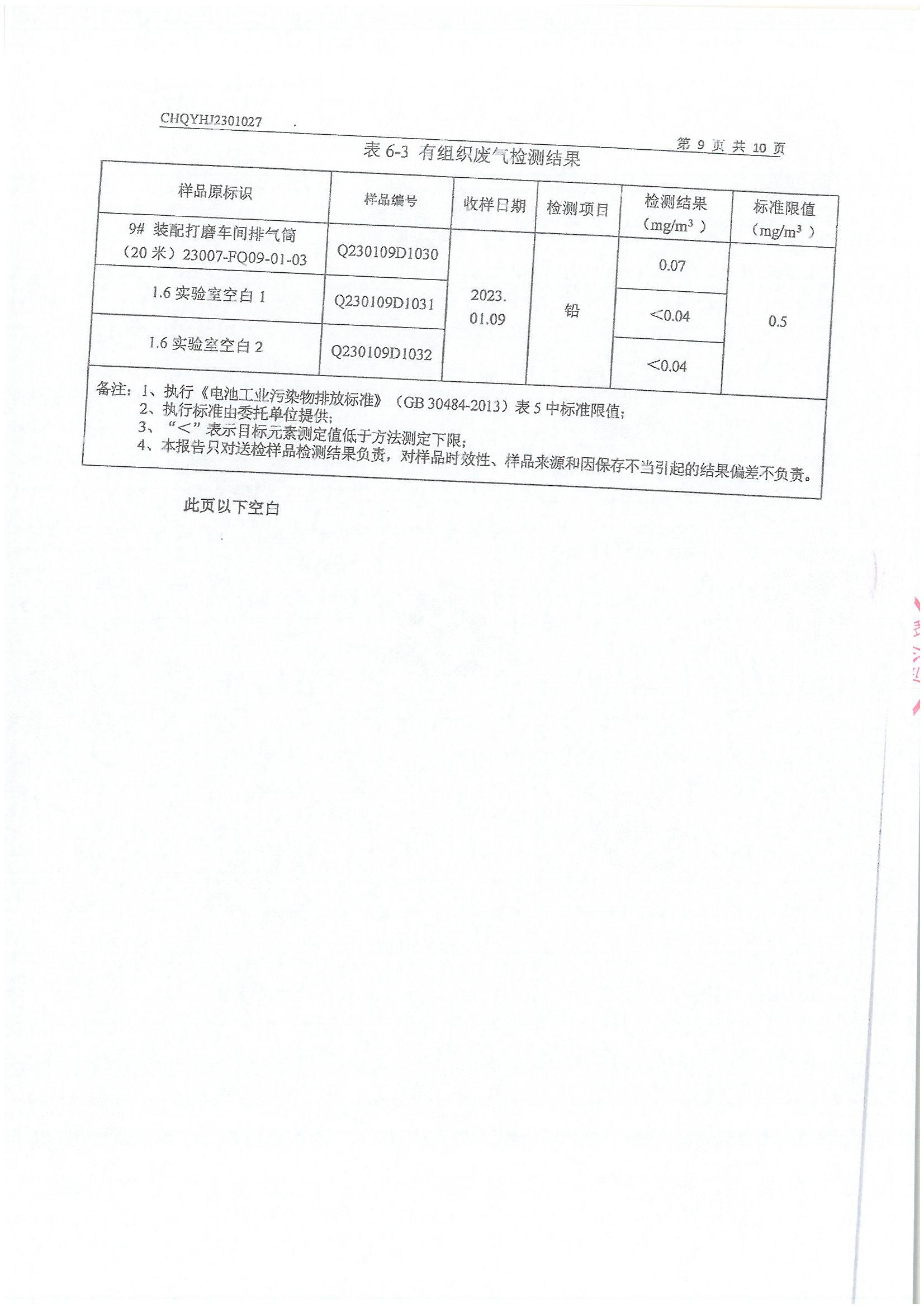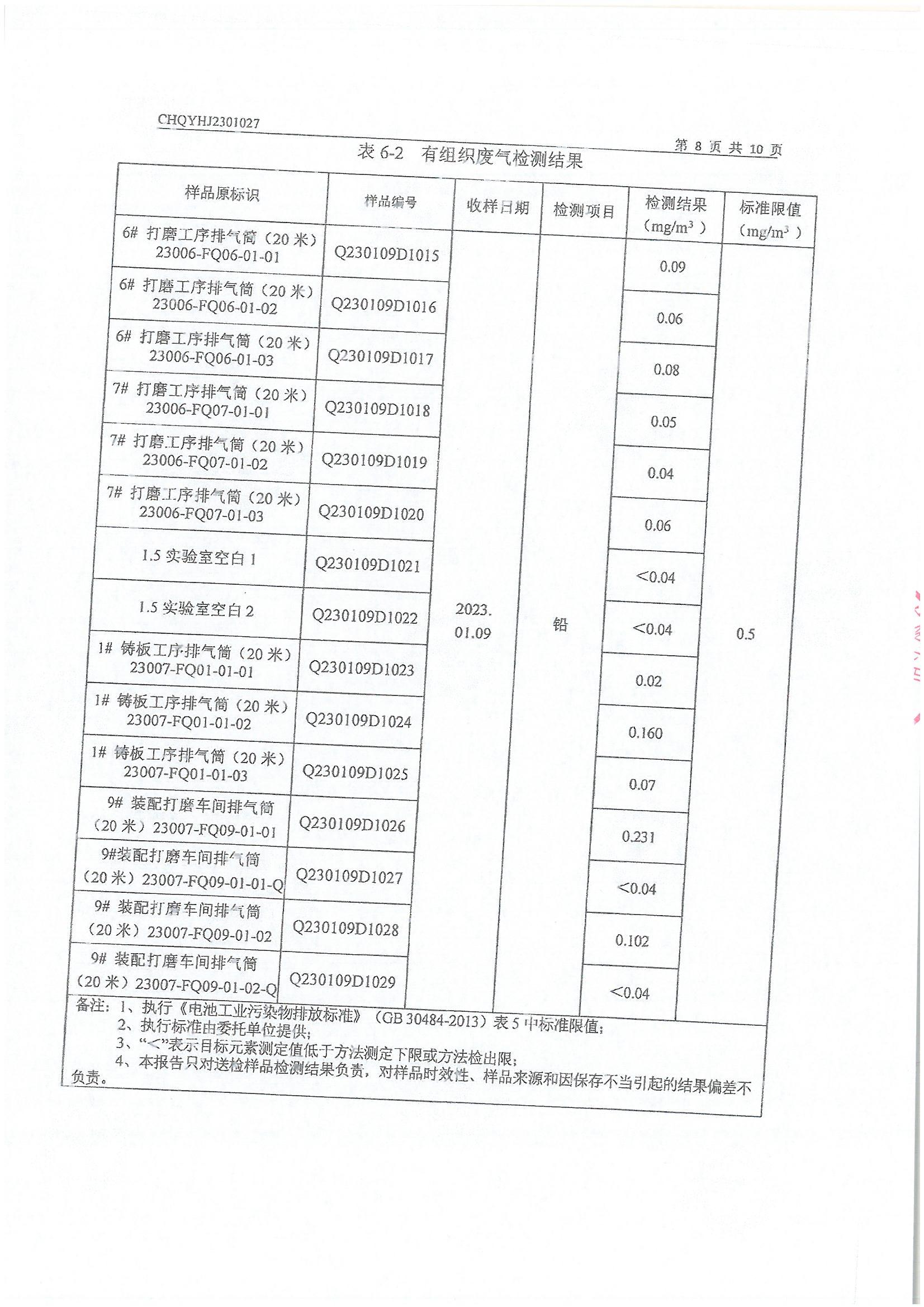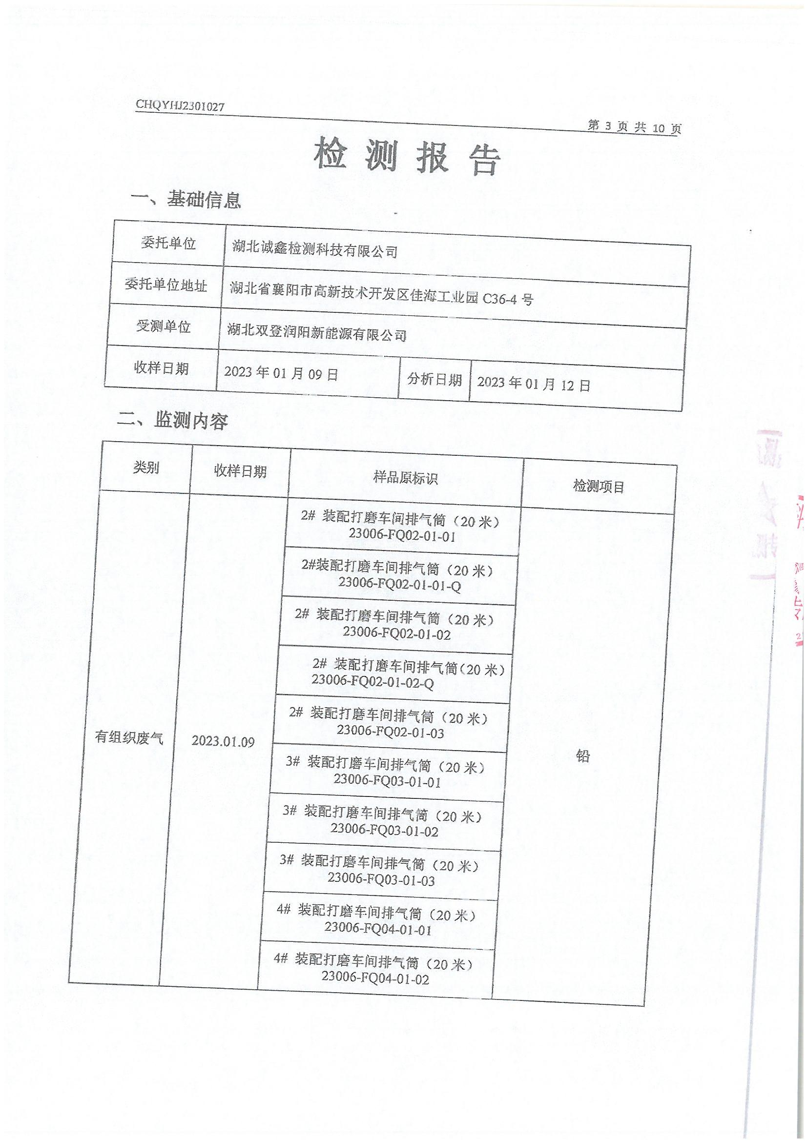 > 2023年1月份 024 湖北双登润阳新能源有限公司污染物检测