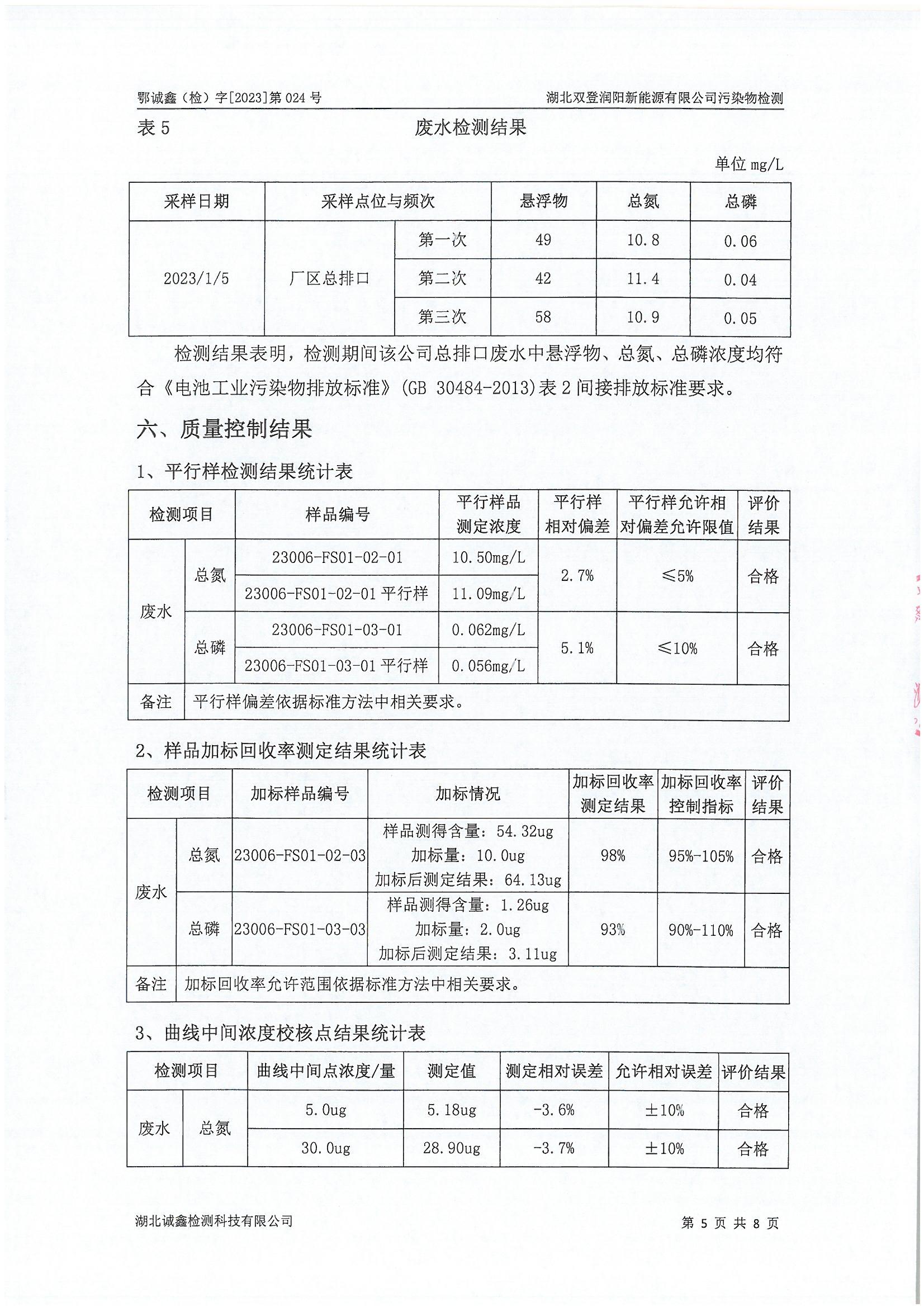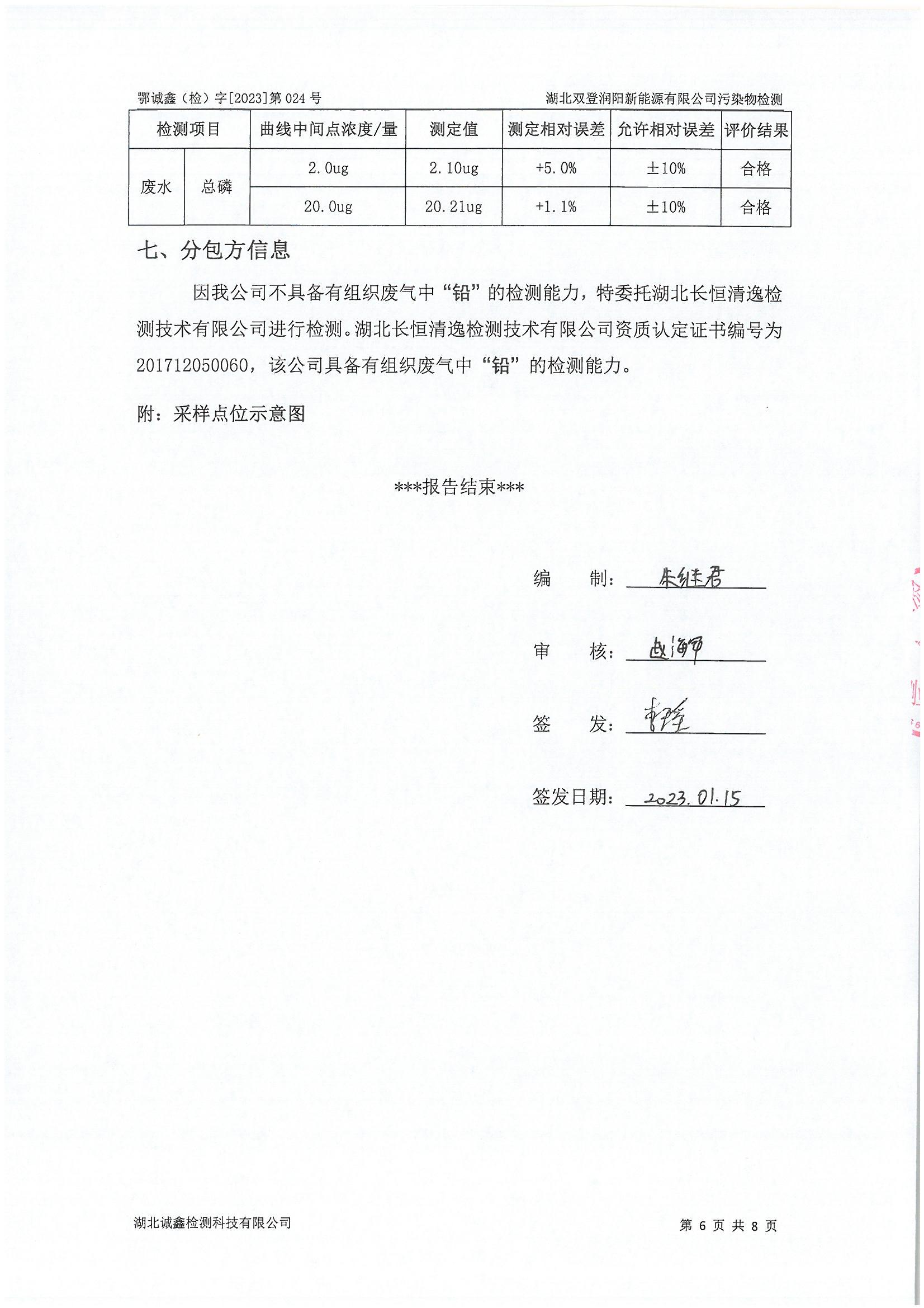 2023年1月份 024 湖北双登润阳新能源有限公司污染物检测