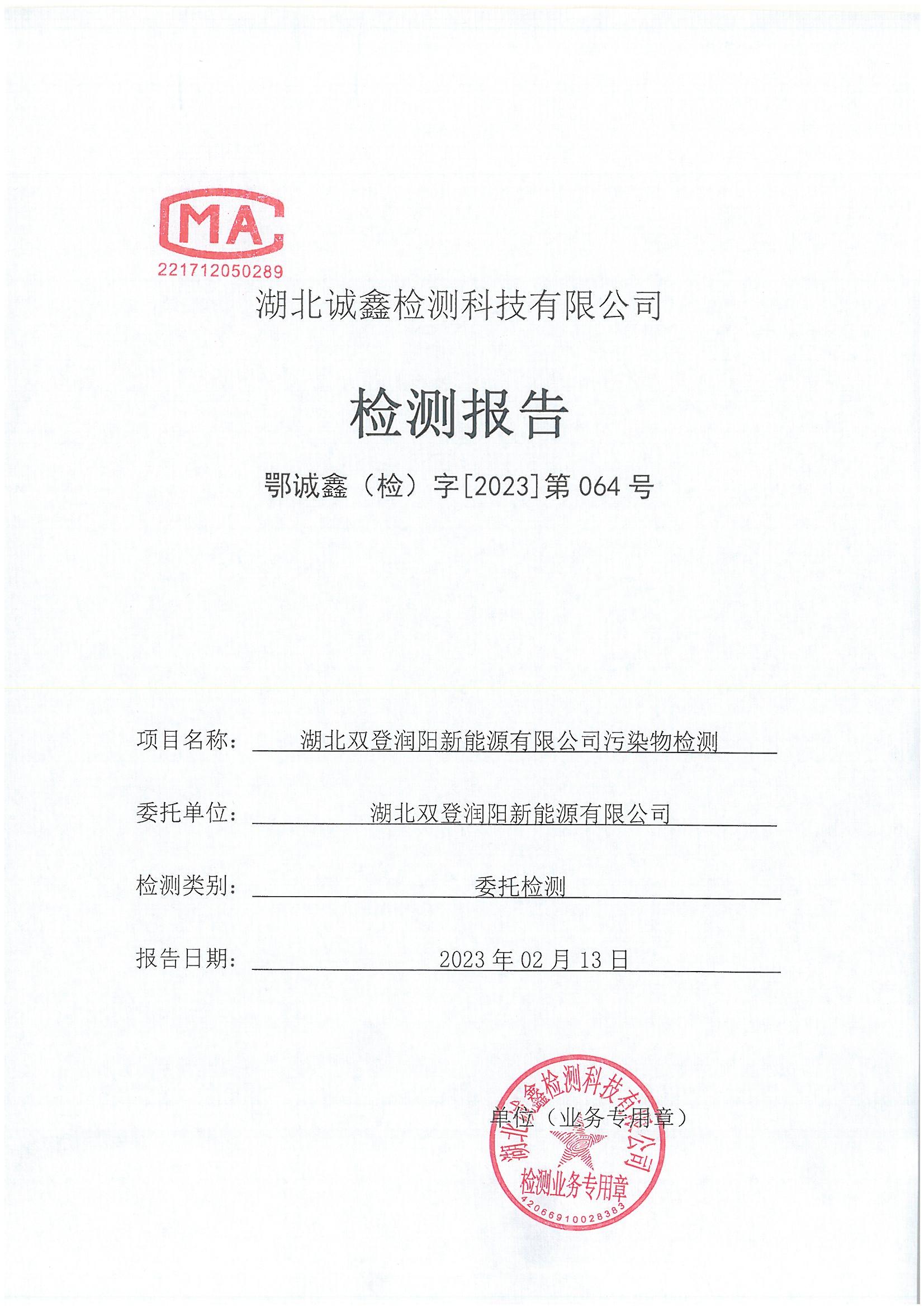 > 2023年2月份 064 湖北双登润阳新能源有限公司污染物检测