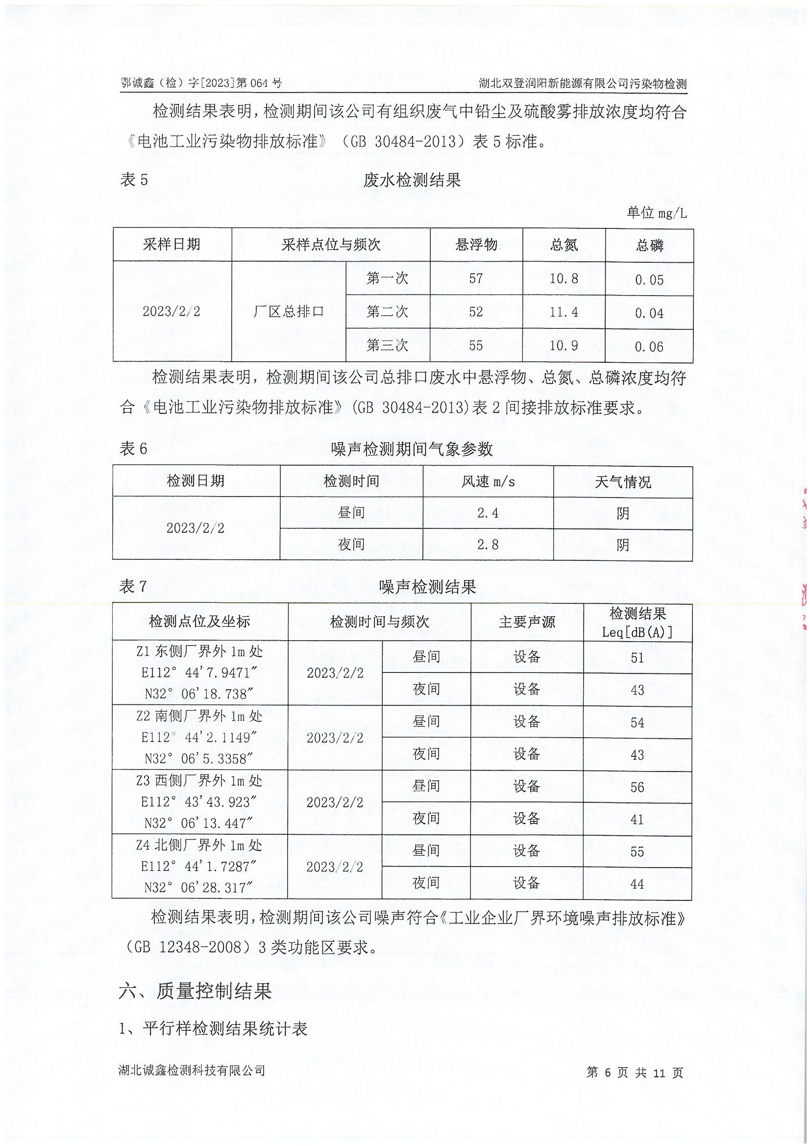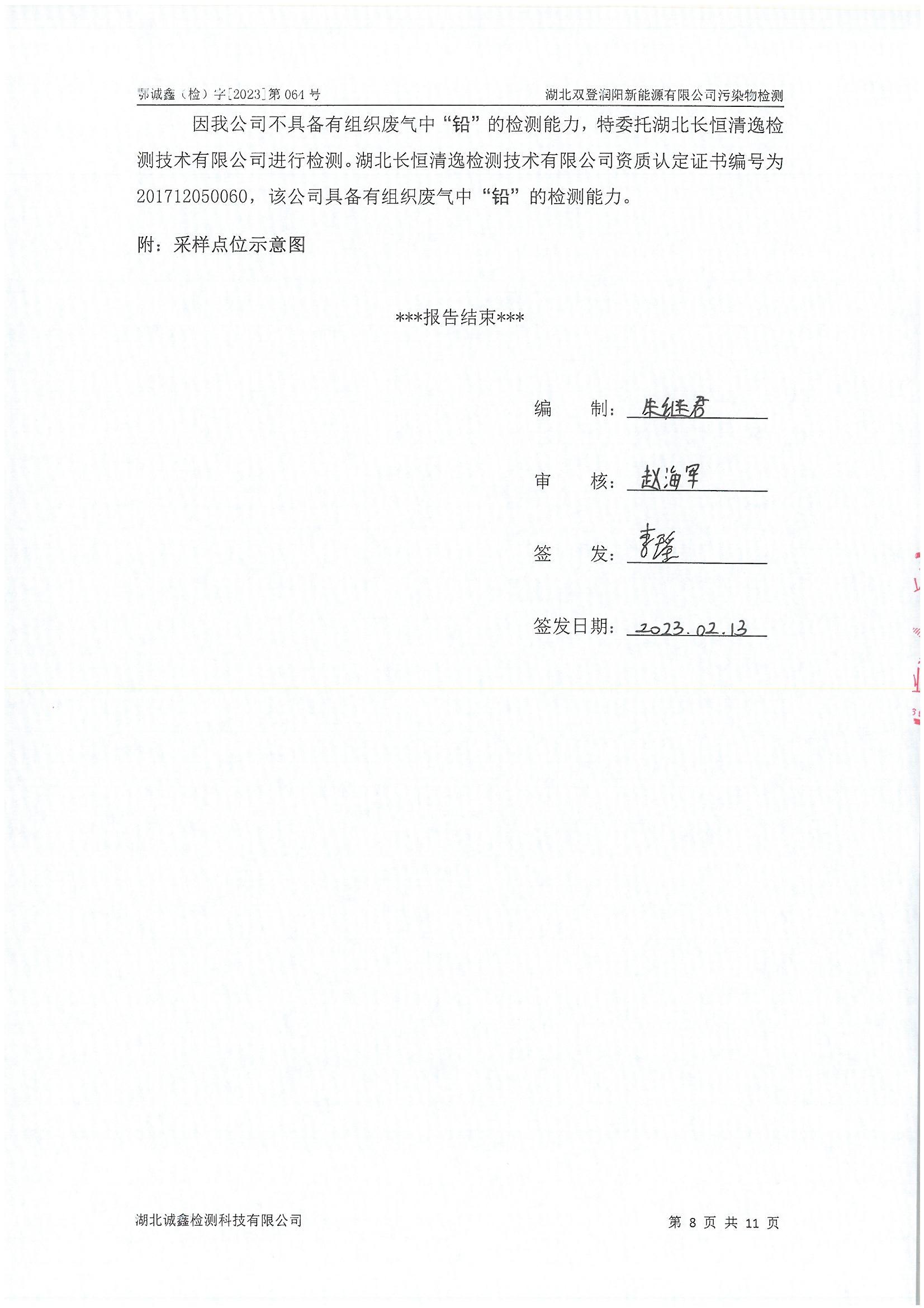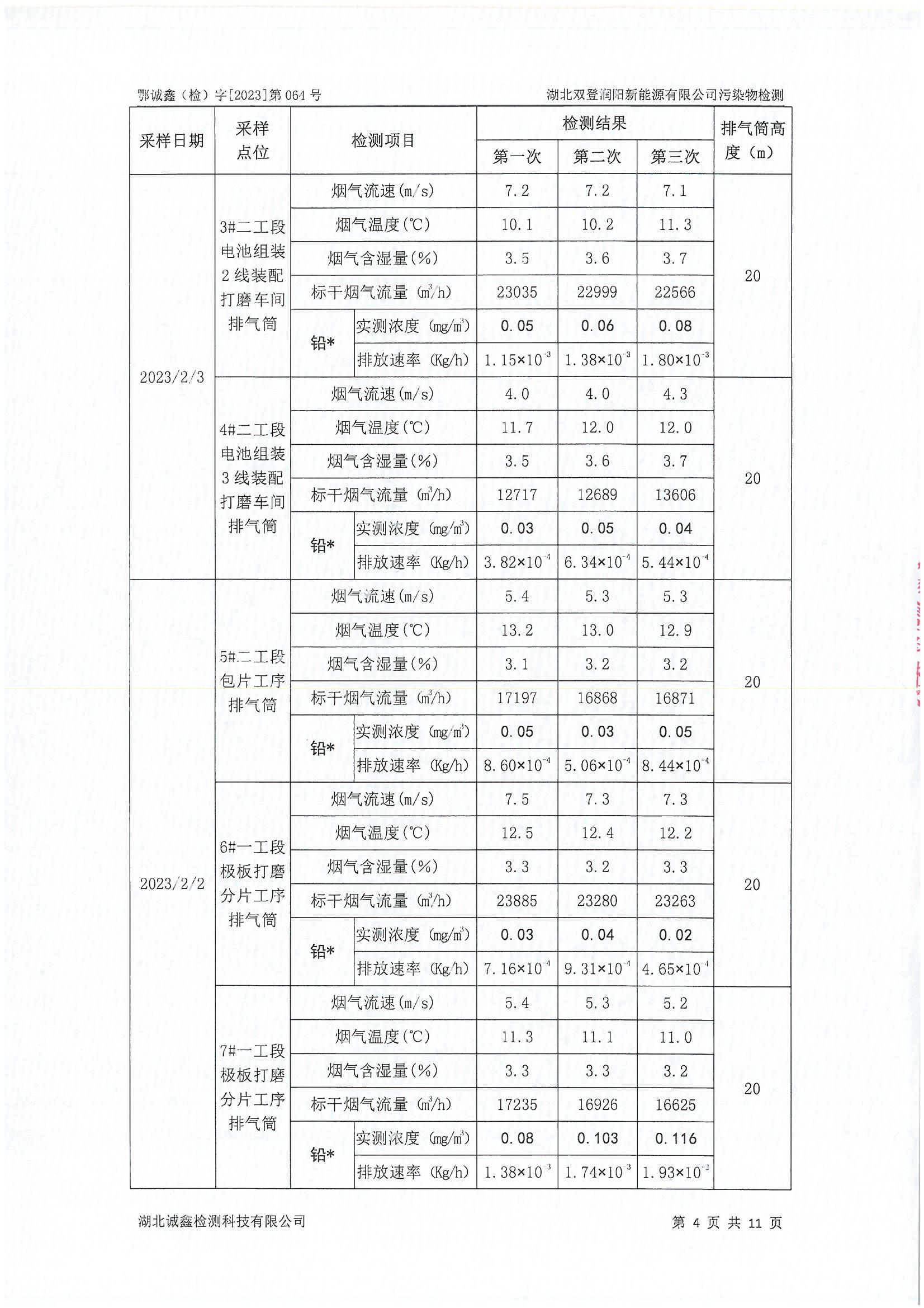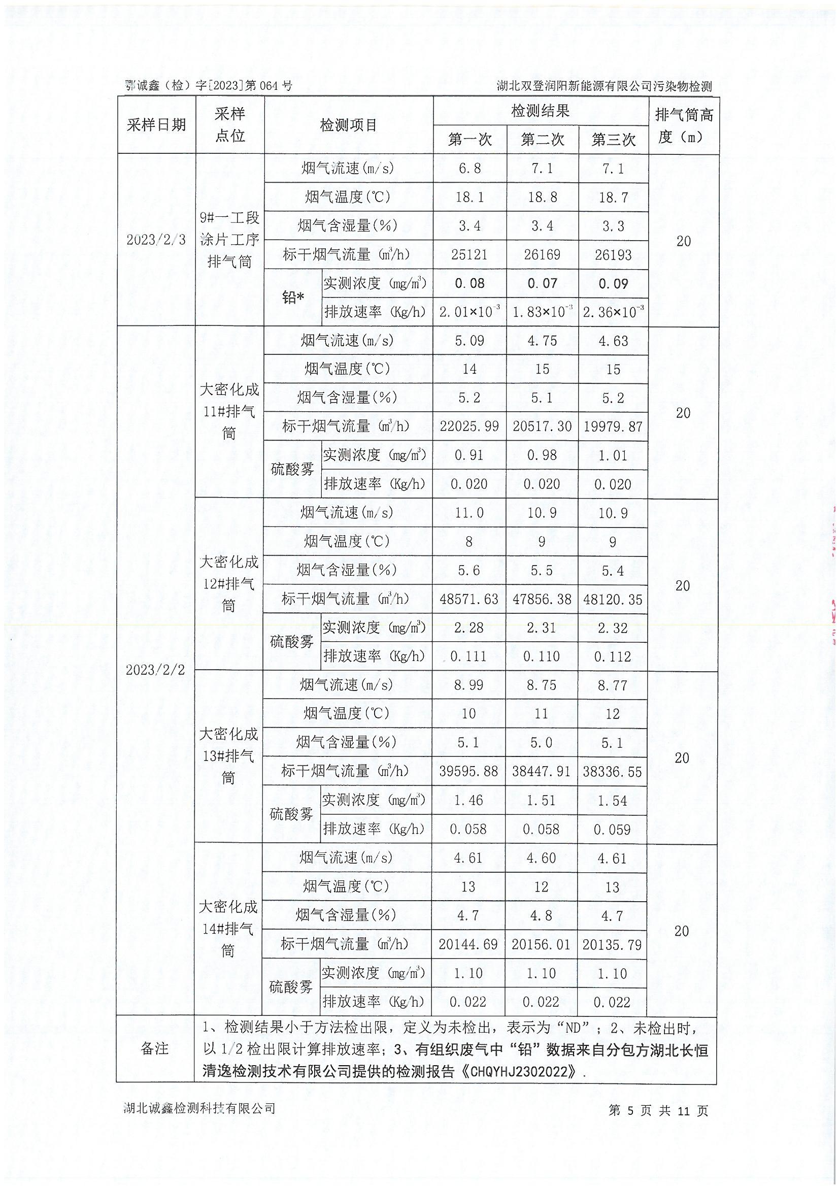 2023年2月份 064 湖北双登润阳新能源有限公司污染物检测