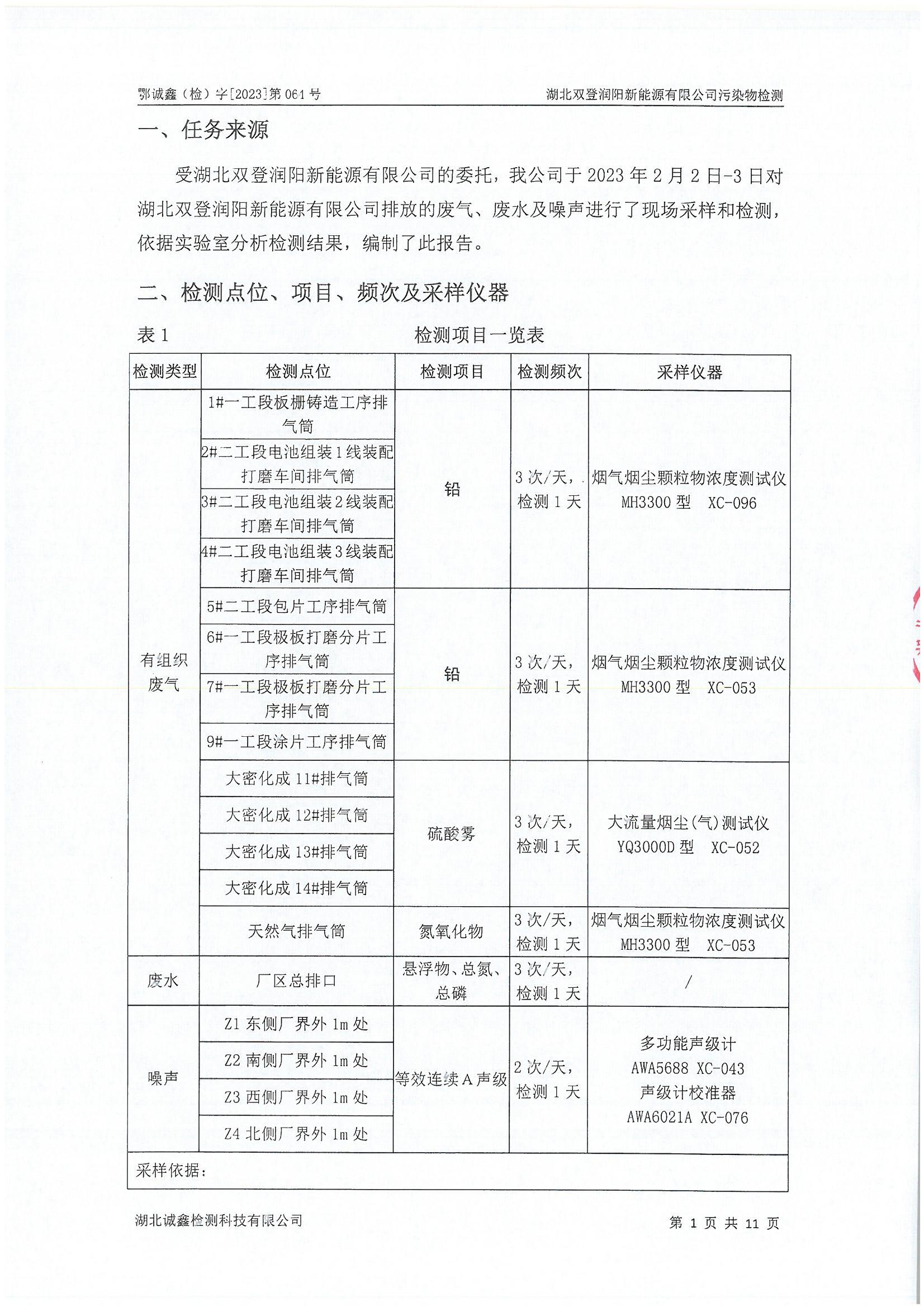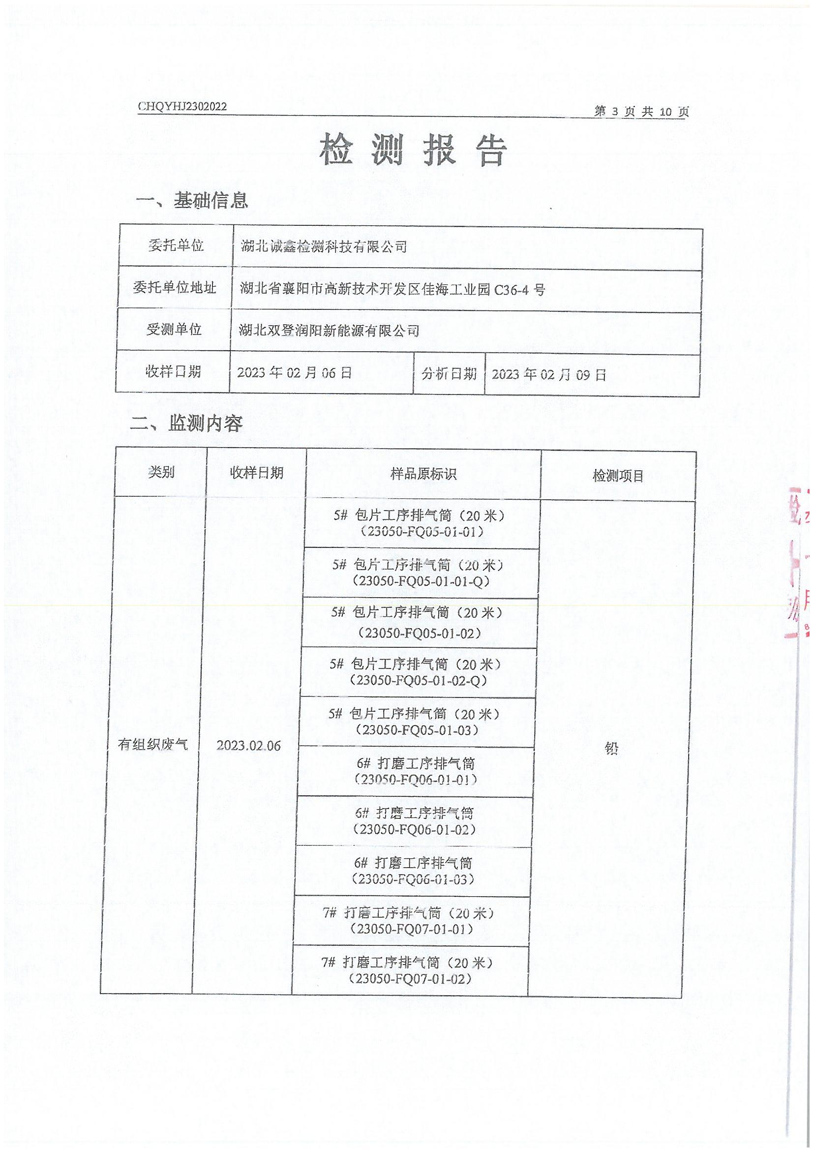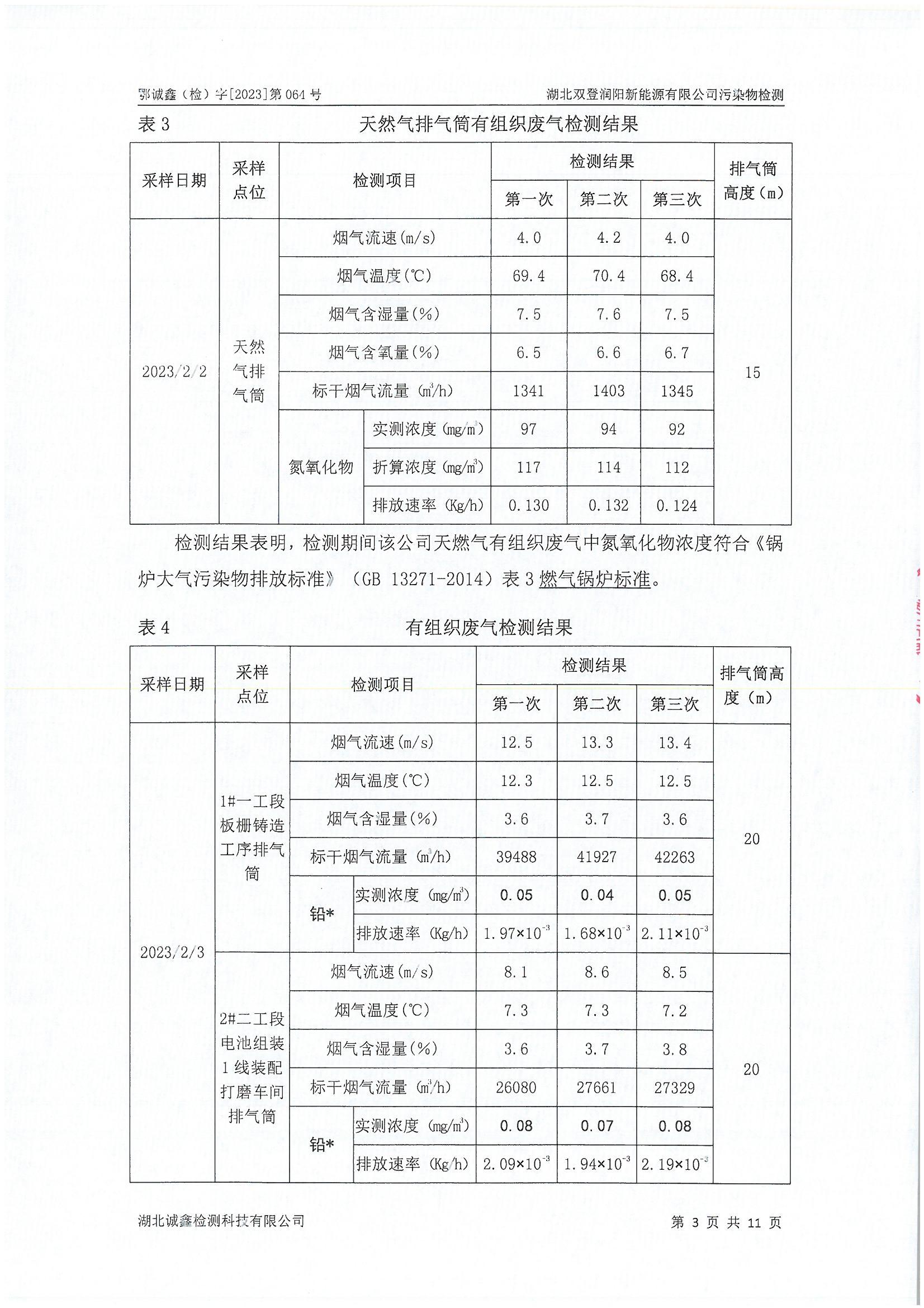 2023年2月份 064 湖北双登润阳新能源有限公司污染物检测