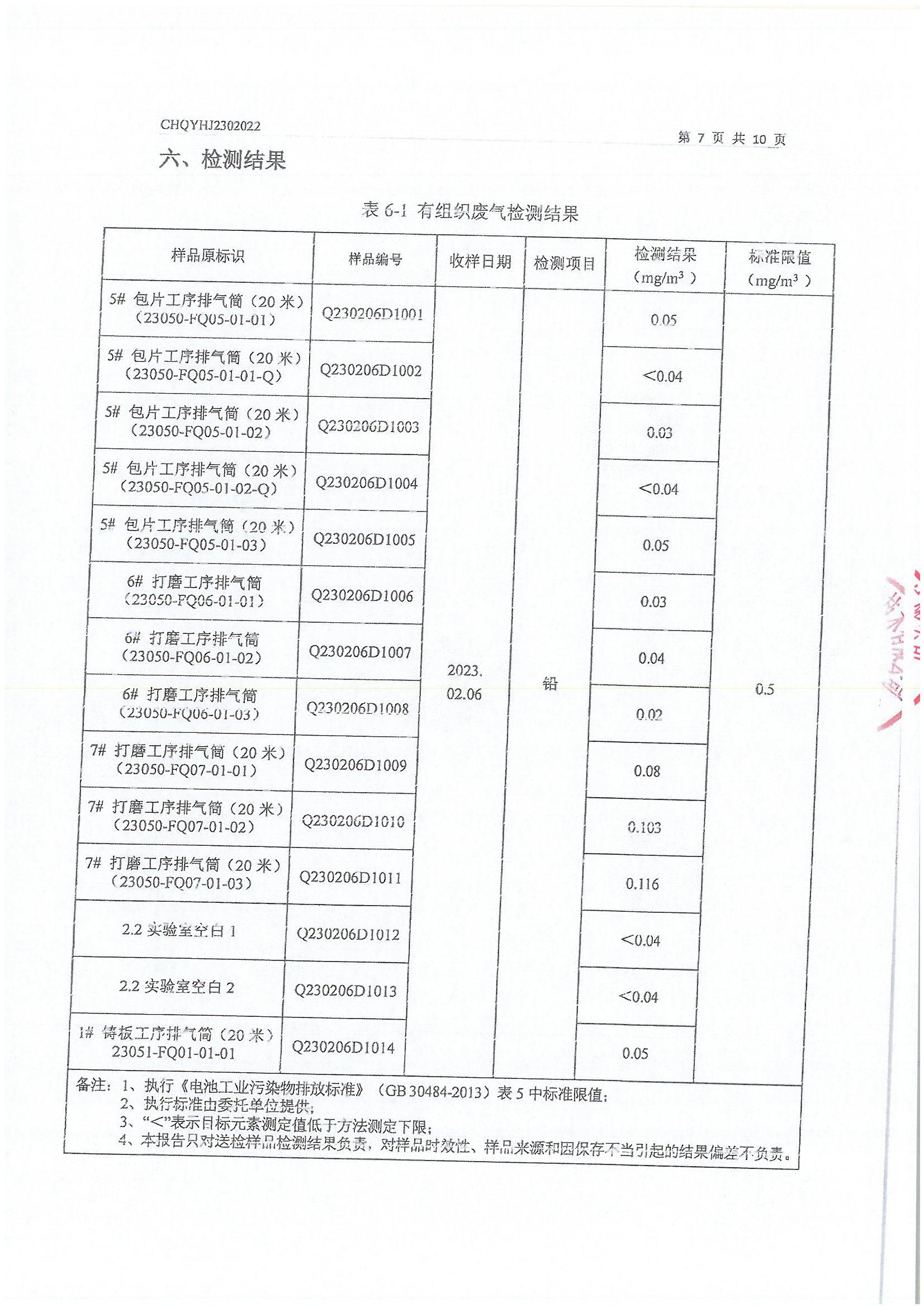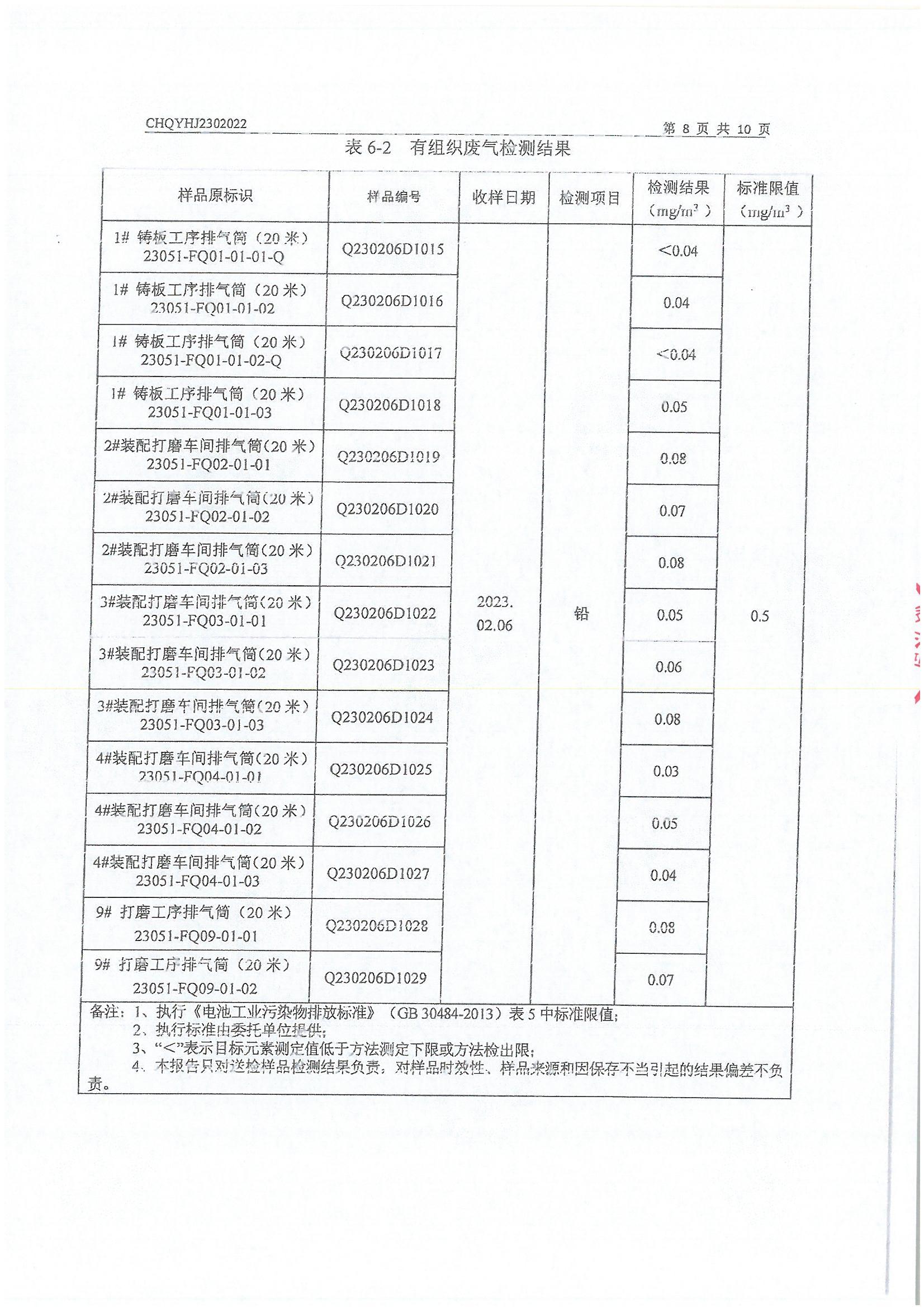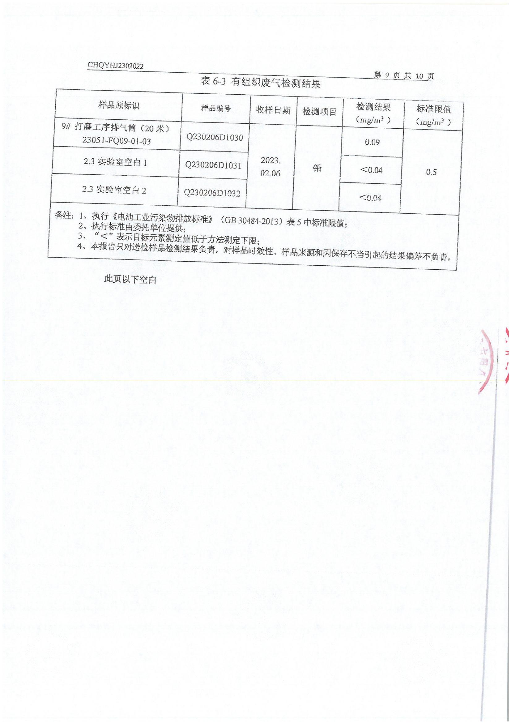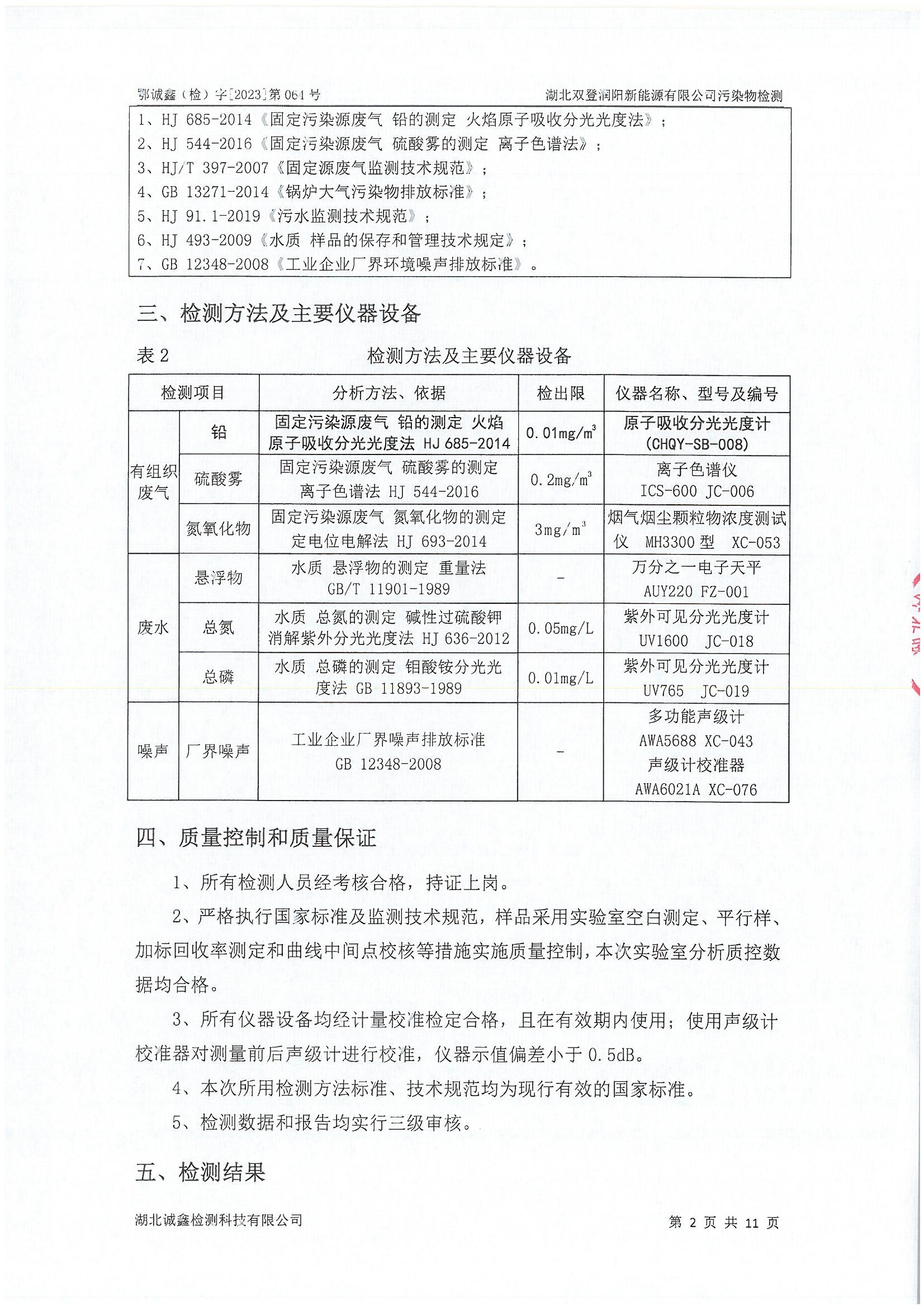 2023年2月份 064 湖北双登润阳新能源有限公司污染物检测