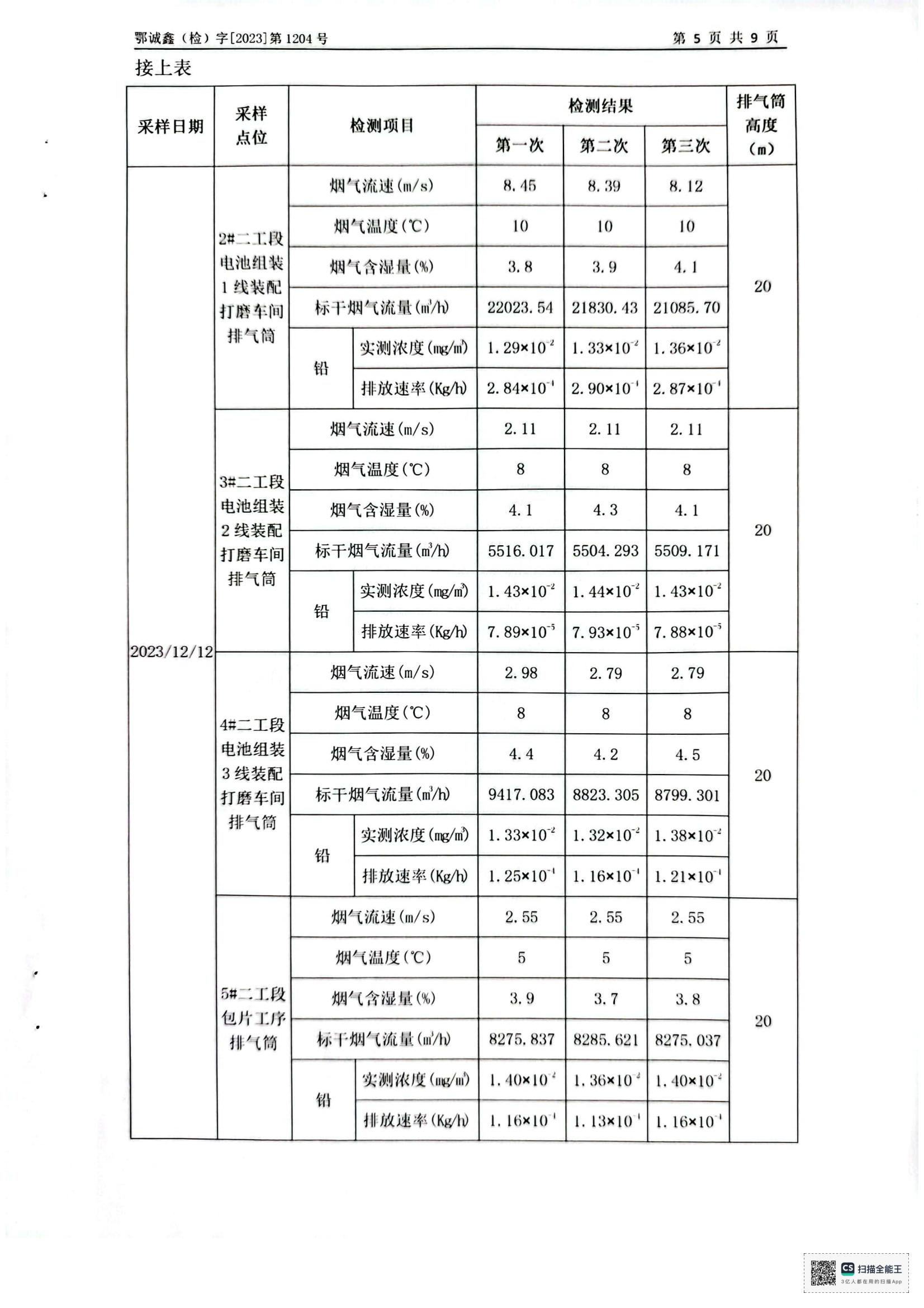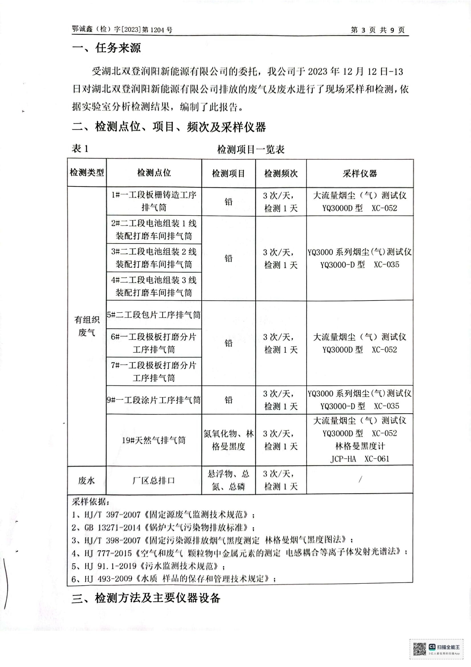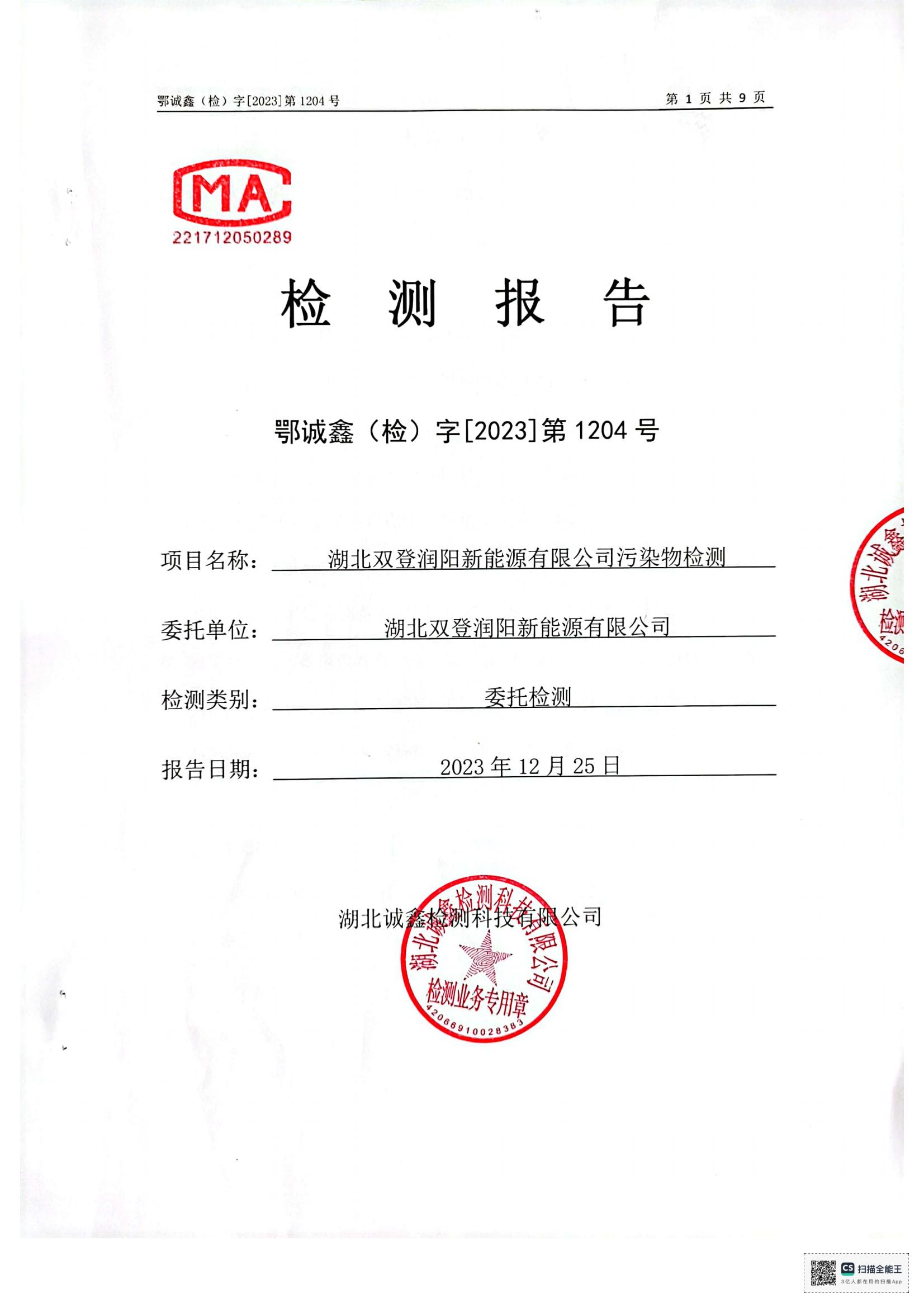 > 2023年12月份 1204 湖北双登润阳新能源有限公司污染物检测