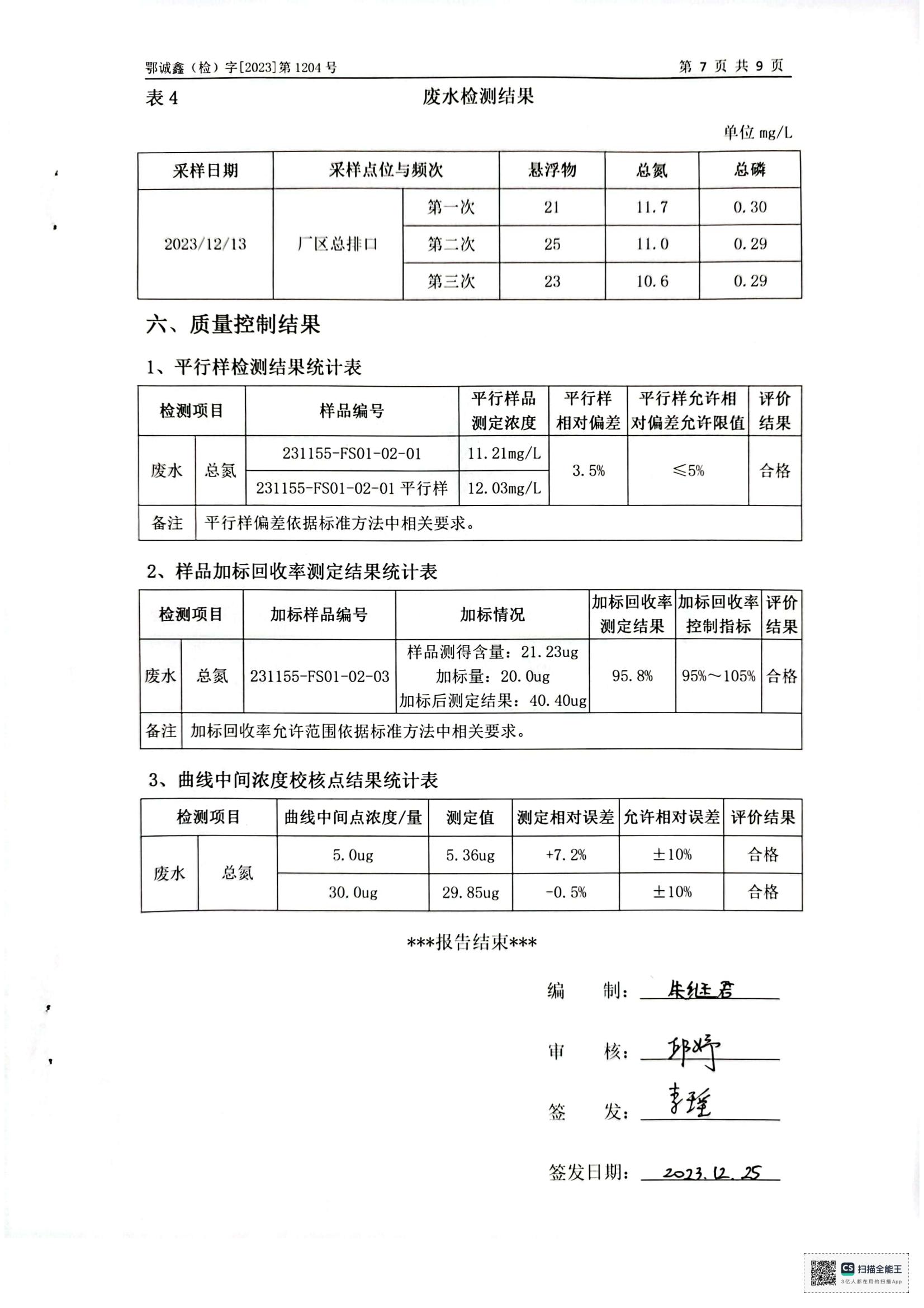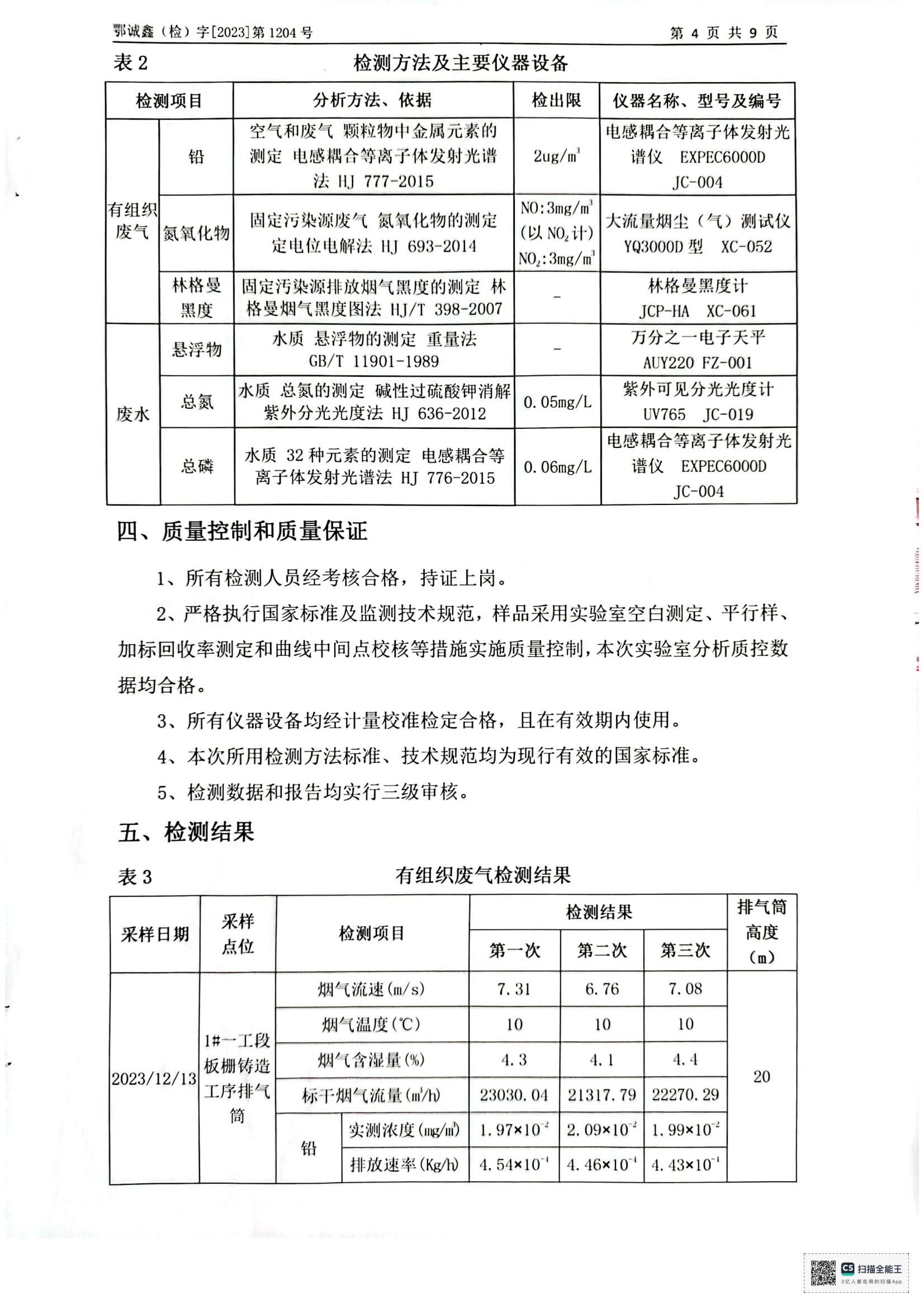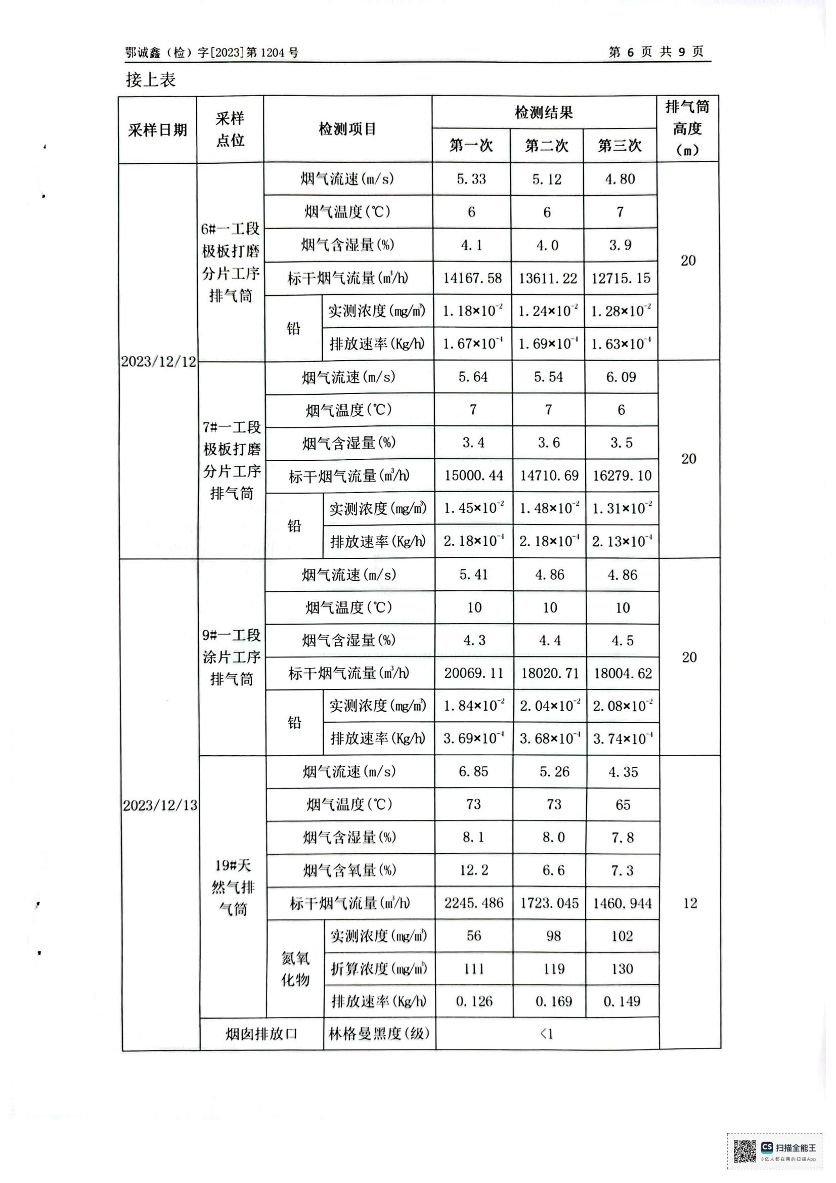 > 2023年12月份 1204 湖北双登润阳新能源有限公司污染物检测
