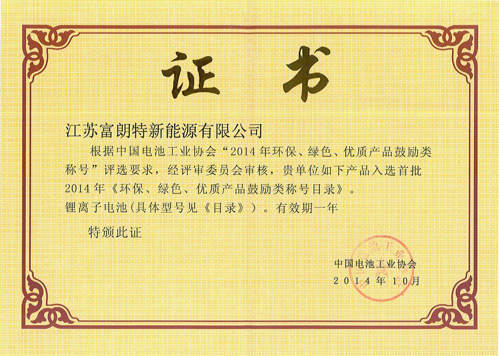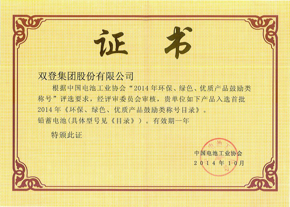 Upon rigorous selection and evaluation by the Review Committee, the products of Shoto Group Company Limited, Runyang and Fulangte under Shoto have been included in the Directory of Encouraging Eco-friendly, Green and Quality Products 2014 by the China Battery Industry Association.