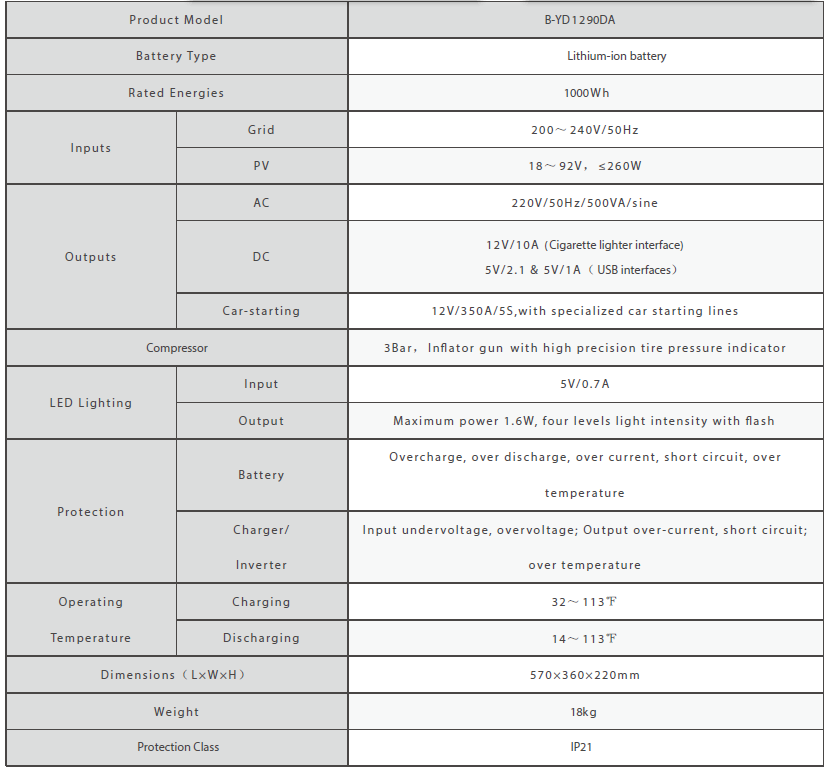 Shoto Rolling Energy has been developed to gain advantages for the portable transport, large capacity storage, ecient photovoltaic charging and rich interfaces. This product adopts the rod-type luggage box structure made of modied PP alloy with the characteristics of llow-temperature performance and impact resistance. The application of lithium-ion battery permit to this power battery to have higher safety performance, excellent temperature performance and high specic energy. This product is compatible with two charging methods: fast charging with photovoltaic panels for the battery when sunny and grid charging when not using the photovoltaic panel. It has rich power output interfaces that can output standard sinusoidal AC, 12V DC ,5V DC and is easy to supply power for common electric appliance, and it also equipped with features which could be helpful for usage with a car like emergency ignition, tire compressor and emergency light.